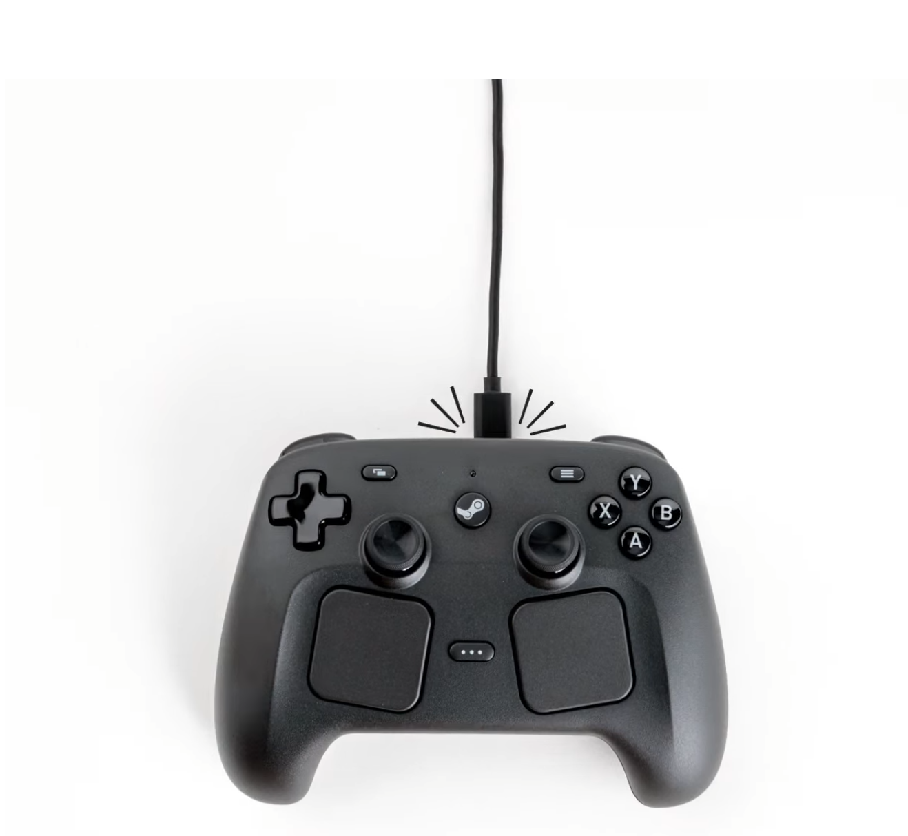 Valve's Steam Controller opvolger is er eindelijk. Gelukkig is de esthetiek van zijn voorganger achterwege gelaten voor een meer conventionele lay-out in PlayStation-stijl. Hij is echter uitgerust met twee capacitieve aanraakzones, direct onder de duimsticks, waardoor er veel kans is op onbedoelde invoer. Ze zullen waarschijnlijk doen wat ze doen op het Steam Deck en helpen bij menunavigatie.
