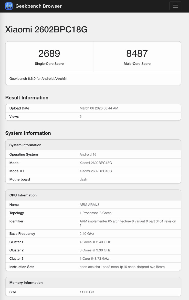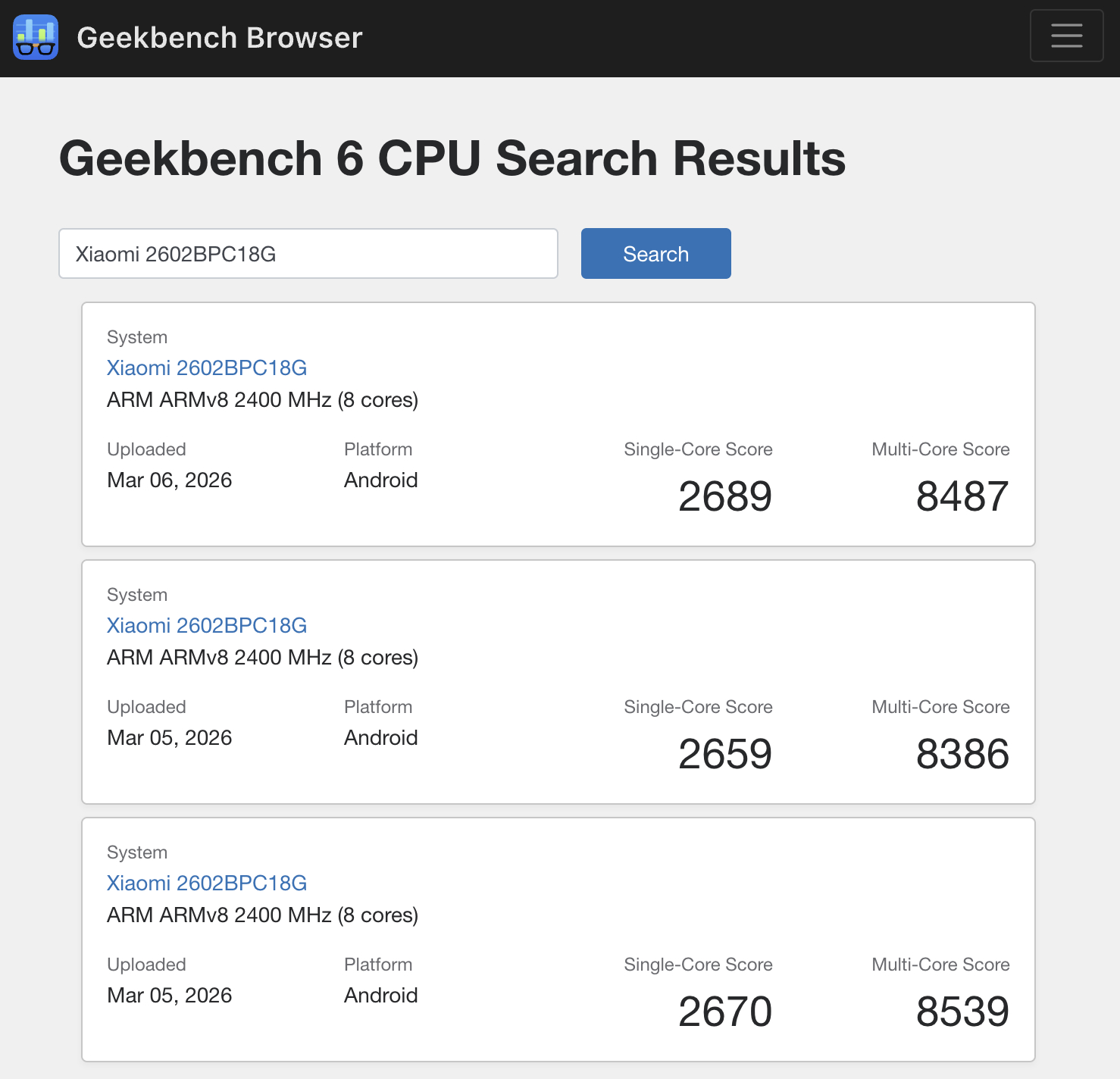 Nu is de laatste variant opgedoken in meerdere vroege benchmarks. Alle aangeduid als Xiaomi 2602BPC18G, is het modelnummer '2602BPC18G' is al gekoppeld aan de verkoopnaam 'Poco X8 Pro Max'. Enerzijds bevestigen de vermeldingen dat Xiaomi van plan is om de Poco X8 Pro Max met 12 GB RAM te verkopen.