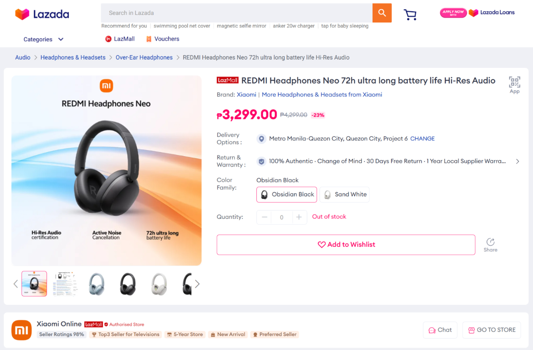Xiaomi zal de Redmi Headphones Neo in eerste instantie uitbrengen in de kleuren Obsidian Black en Sand White. Zoals de afbeeldingen hieronder laten zien, heeft Lazada de Redmi Headphones Neo geprijsd op PHP 3.299 (~$55) in de Filippijnen, afgeprijsd van PHP 4.299 (~$70). Ondertussen heeft Diglex Electronics dezelfde hoofdtelefoon genoteerd voor $36,70, maar met een minimale bestelhoeveelheid van 100 stuks.