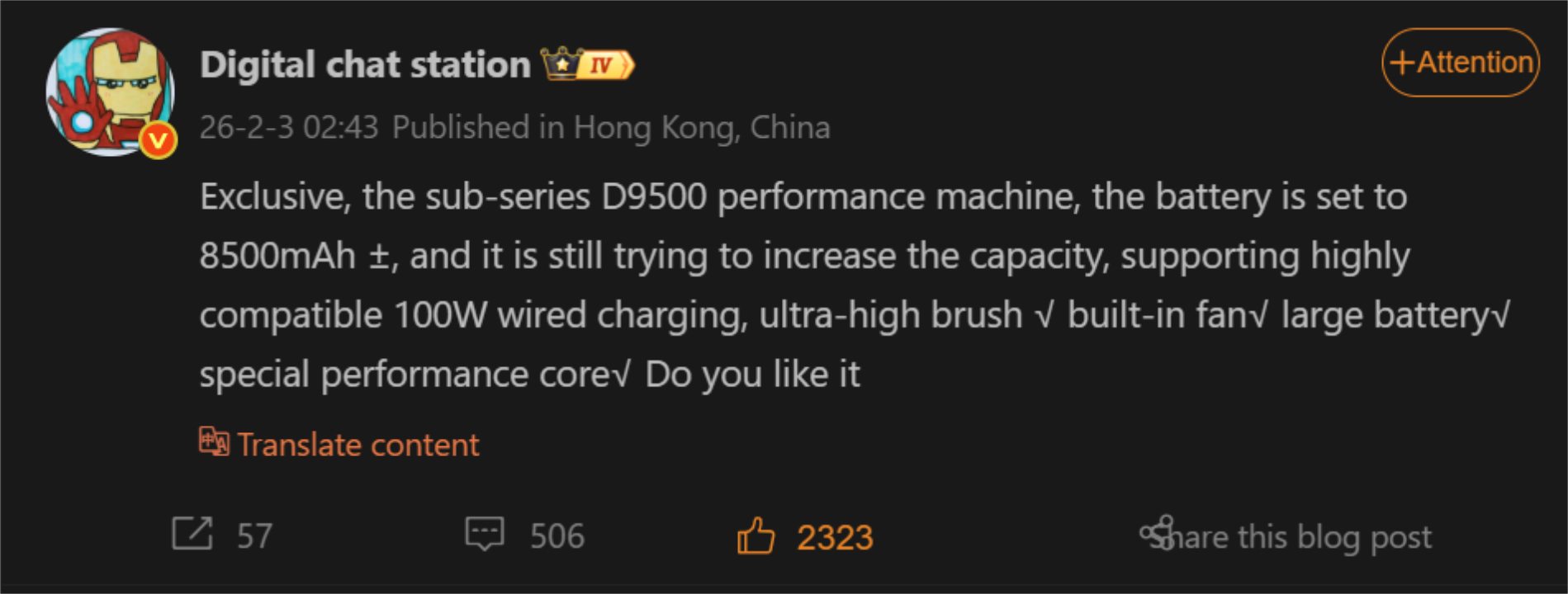 Bovendien geeft Digital Chat Station aan dat Xiaomi de Redmi K90 Ultra ontwikkelt met een "sub-serie Dimensity 9500 prestatiemodel". Hieruit kunnen we afleiden dat de leaker de nog niet uitgebrachte Dimensity 9500+ bedoelt in plaats van de mindere Dimensity 9500 die de Redmi Turbo 5 Max. Er zijn aanwijzingen dat de Redmi K90 Ultra ook een ingebouwde ventilator zal hebben, in tegenstelling tot zijn voorgangers.