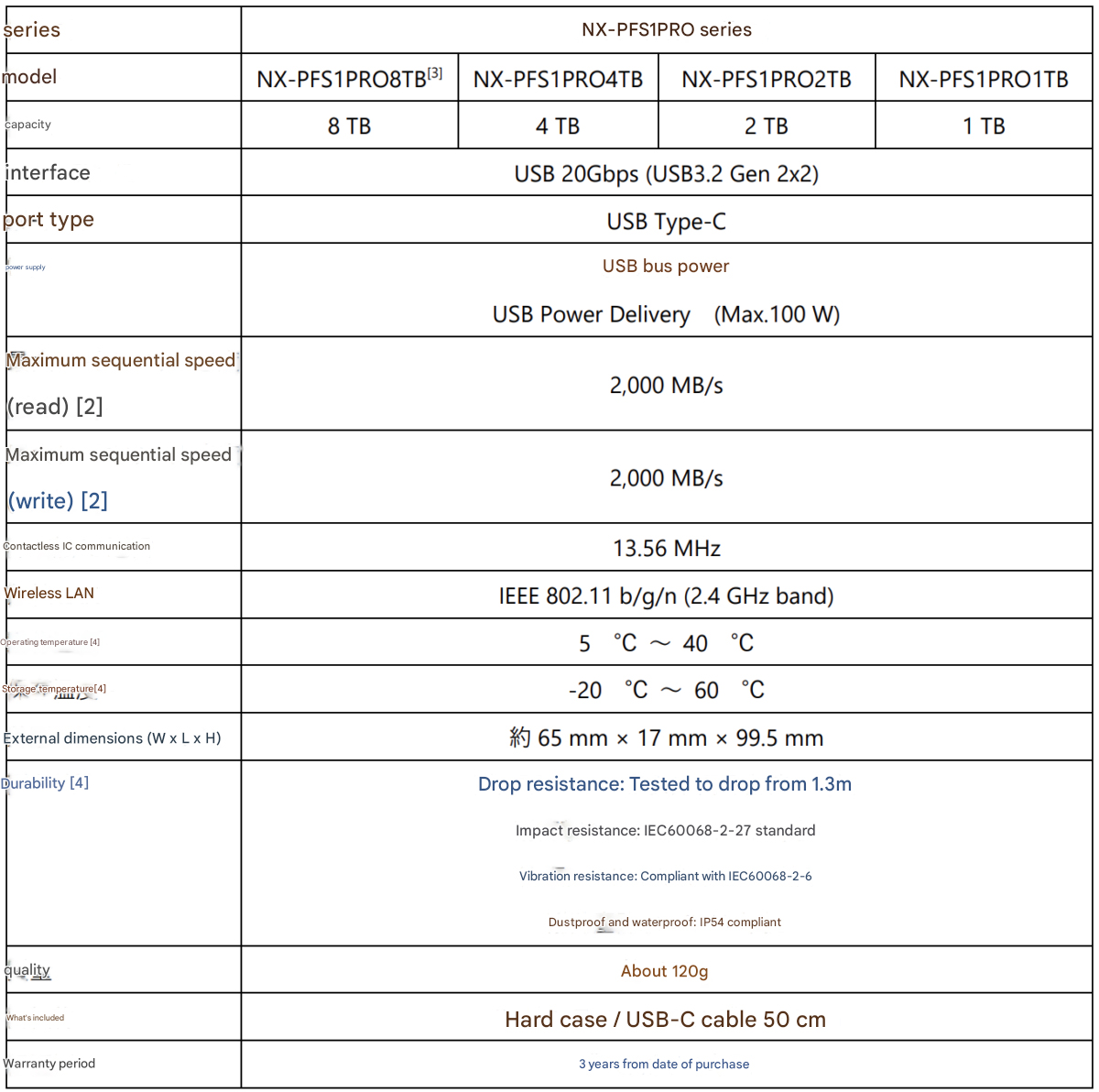 De Nextorage NX-PFS1PRO is officieel onthuld in Japan. Het is een nieuwe draagbare SSD die gekocht kan worden met maximaal 8 TB aan opslagruimte, en ongeacht de gekozen capaciteit is de overdrachtssnelheid van de schijf gewaardeerd op 20 Gbps, via de USB 3.2 Gen 2x2 Type-C interface.