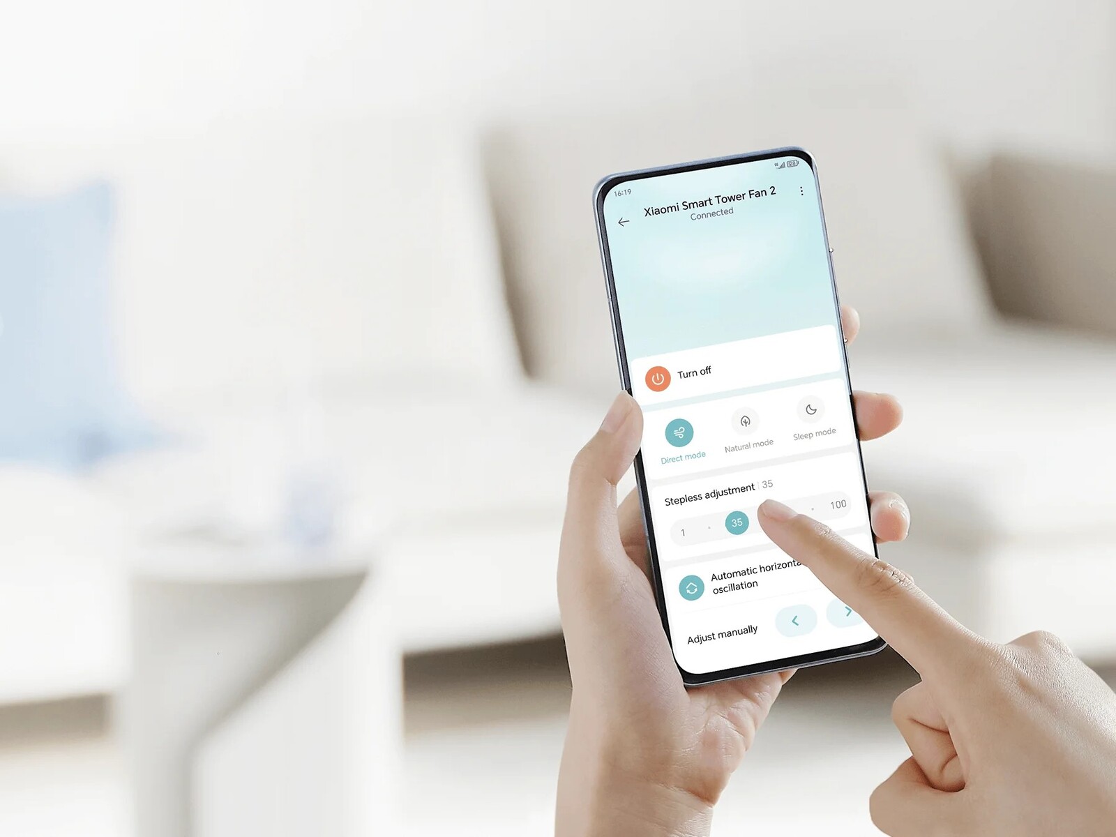 De Smart Tower Fan 2 heeft een ventilatiebereik van 10 m (~32.8 ft) en levert zachte wind vanuit de uitlaat van 0,6 m (~2.0 ft). Volgens Xiaomi zorgen onderbrekingen in de luchtstroom ervoor dat de wind de natuur nabootst in vier standen, zoals Lakeside breeze en Orchard breeze. Een upgrade ten opzichte van zijn voorganger is een hogere pieksnelheid van 494 m³/u (~17,445 ft³/u), een toename van 30%. De instellingen van de ventilator, zoals snelheid, briesmodus en slaapmodus, kunnen op afstand worden aangepast via de Xiaomi app. Dankzij een Bluetooth Mesh Gateway kunt u de ventilator koppelen aan een slimme temperatuur- en vochtigheidsmonitor, zodat de ventilator zich op intelligente wijze aanpast aan het klimaat.