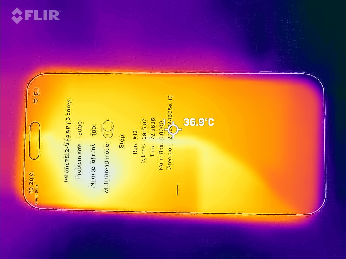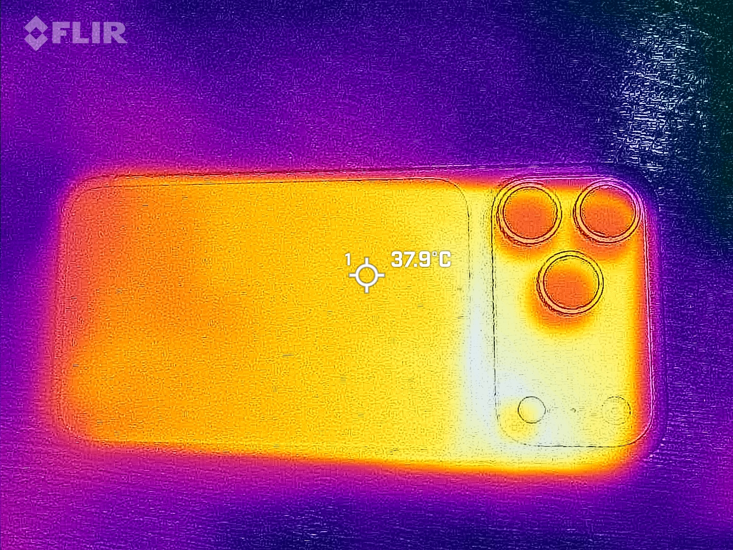 Bij normaal gebruik blijft de iPhone 17 Pro Max aangenaam koel, maar bij maximale belasting loopt de oppervlaktetemperatuur op tot wel 42°C. Hoewel dit warm aanvoelt, is het nog steeds thermisch veilig.
