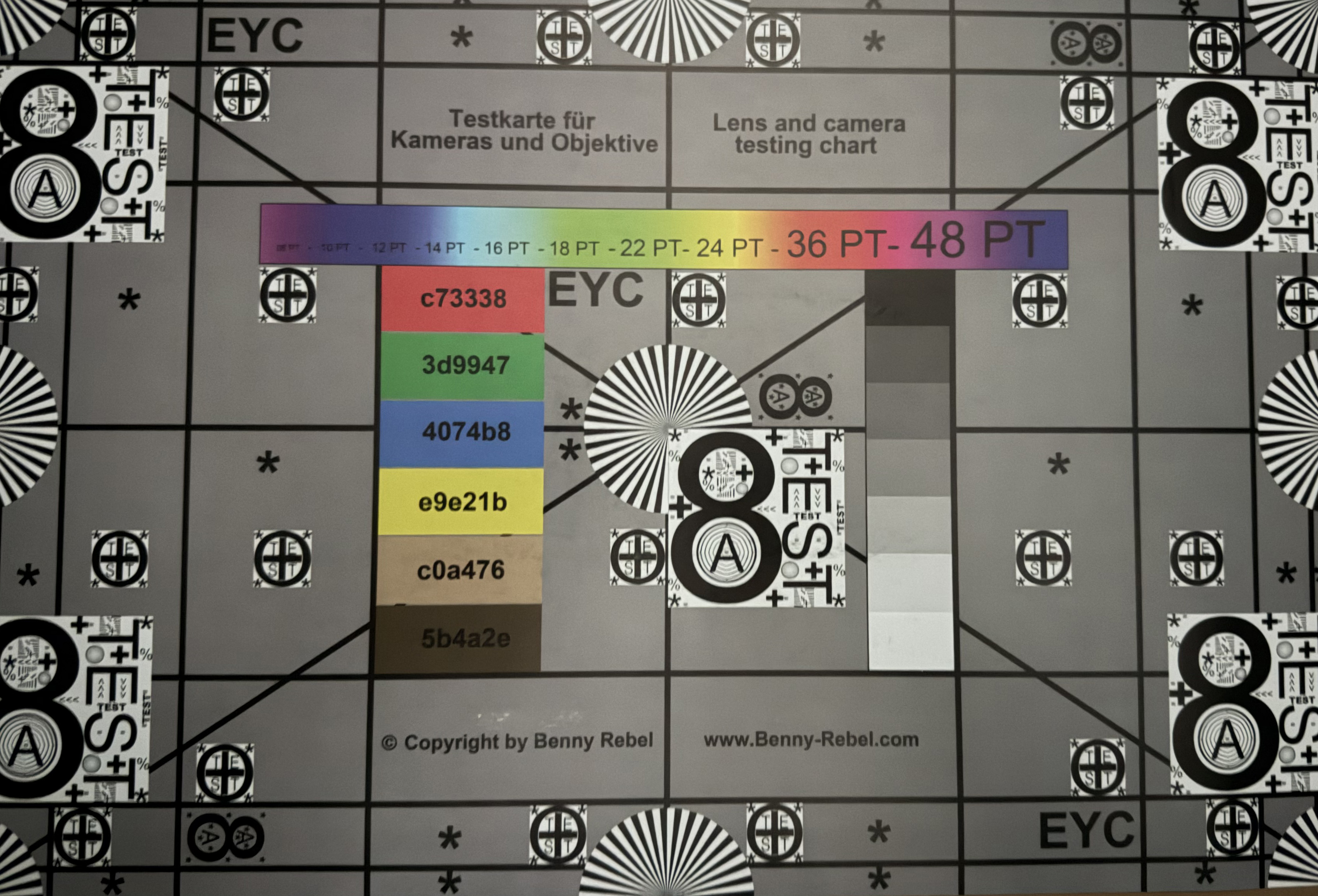 Daylight imageDaylight imageUltra-wide angleLow light imageOnder gecontroleerde lichtomstandigheden is het beeld op de testkaart bijna helemaal scherp. Het hoofdobjectief presteert ook indrukwekkend als het gaat om het weergeven van de referentiekleuren. Kleine afwijkingen van de doelwaarden worden alleen waargenomen in enkele groene en blauwe tinten.