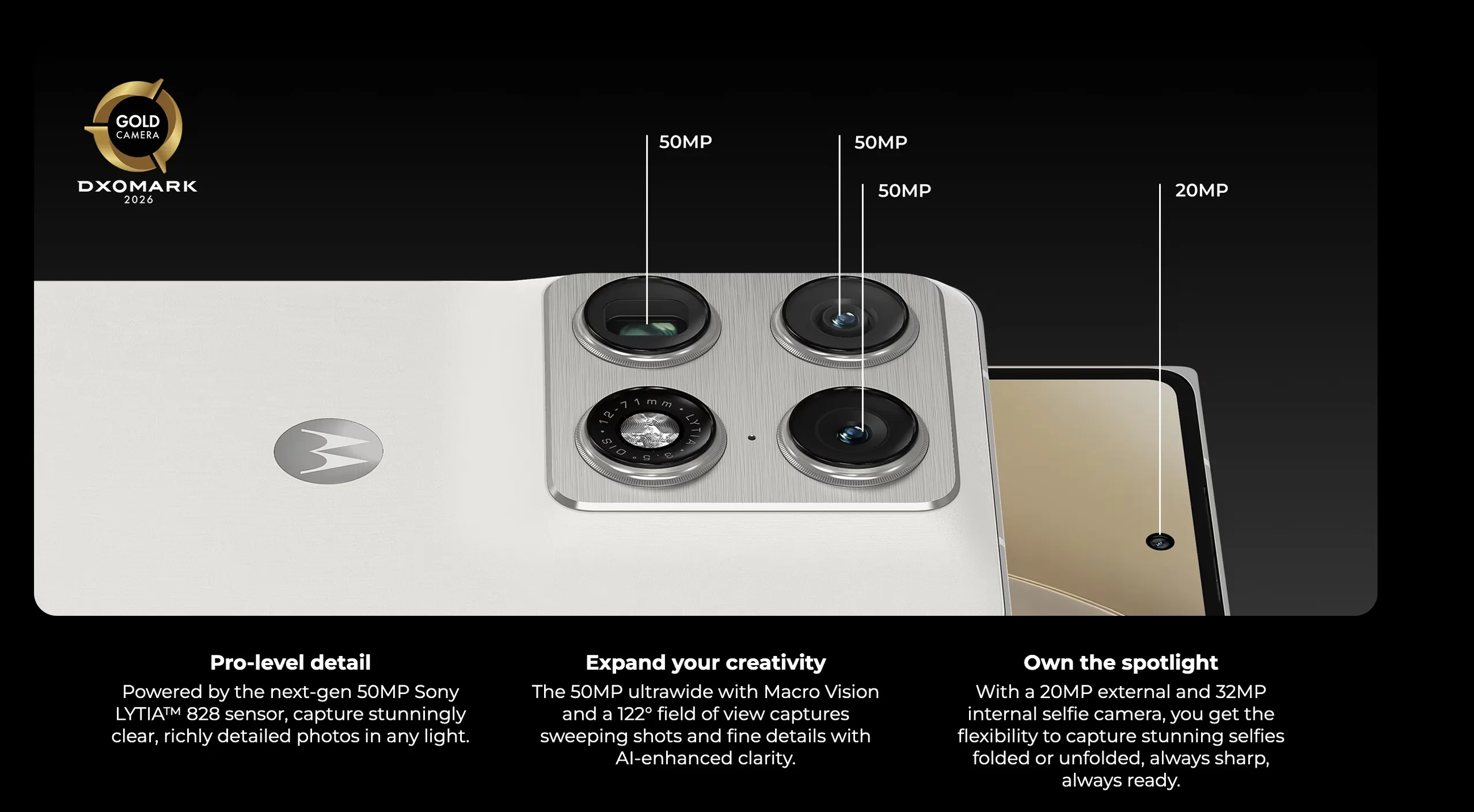 - 20 MP cover en 32 MP interne selfiecamera's