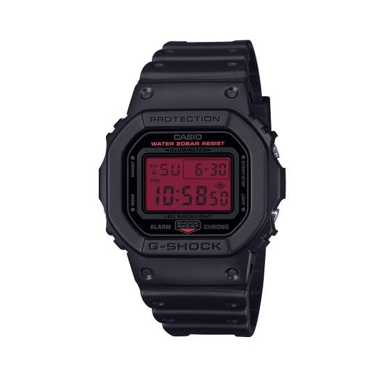 Casio heeft eindelijk de G-Shock DW-5600BBR-1ER gelanceerd in het Verenigd Koninkrijk, een nieuwe toevoeging aan de "Black and Bold Red" serie (zoals eerder gemeld hier). Het model is nu verkrijgbaar via de online winkel van G-Shock UK voor £99,90 (~$133) en brengt de vertrouwde DW-5600 vorm terug met een stealthy matzwarte kast en een contrastrijk rood display.