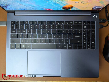 De indeling van het toetsenbord is super netjes en verschilt van de N16 Pro. Aan de rechterkant is een numeriek toetsenblok met kleine toetsen geperst naast de andere, vrij grote toetsen. Helaas zijn de verticale pijltjestoetsen gehalveerd in hoogte. De laptop wordt standaard geleverd met een Amerikaanse toetsenbordindeling, maar sprekers van andere talen hoeven zich geen zorgen te maken, want de fabrikant levert labelingstickers mee voor verschillende andere talen.