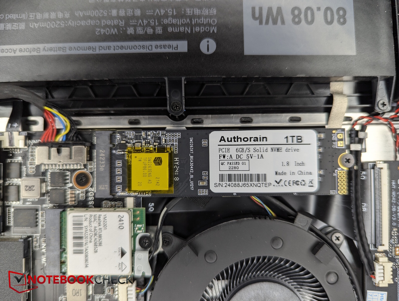 Om het apparaat te openen, hoeft u alleen maar 13 kruiskopschroeven te verwijderen. Het lijkt erop dat er nauwelijks klemmen op de bodemplaat zitten, dus deze komt er meteen af. Binnenin hebt u dan toegang tot alle belangrijke onderdelen, zoals de SSD, het RAM-geheugen, de batterij, de Wi-Fi-module en het koelsysteem. Er is een tweede M.2-sleuf voor SSD's.