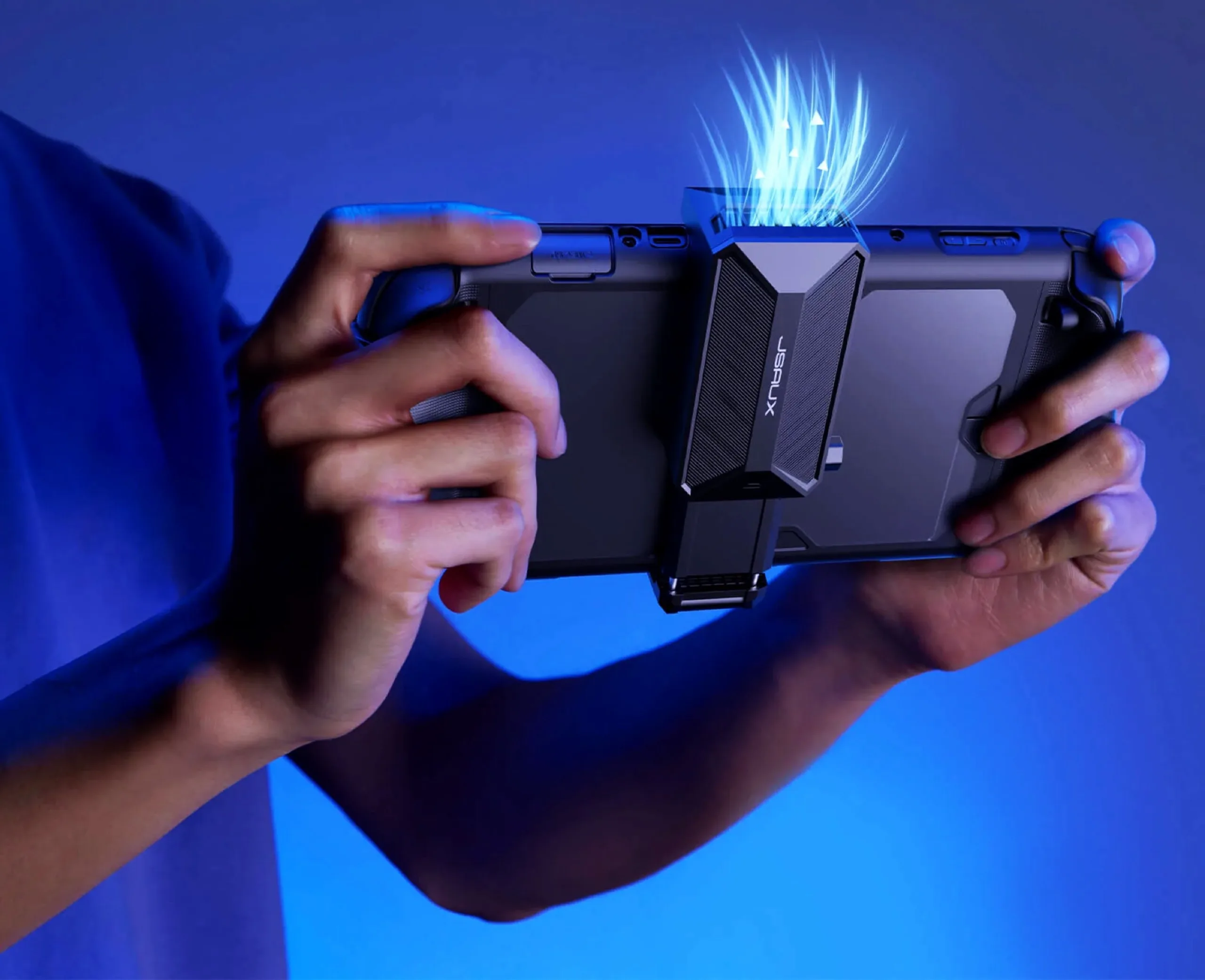 Dankzij een extra USB-C poort aan de achterkant kan de console worden opgeladen terwijl de Jsaux ventilator wordt gebruikt. Deze poort kan de console opladen met maximaal 18 watt, en Jsaux raadt een 65 watt USB-C oplader aan om de console in drie uur volledig op te laden. De snelheid van de ventilator kan worden aangepast via een draaiknop, en Jsaux merkt op dat een hoger toerental uiteraard tot meer ventilatorgeluid leidt.