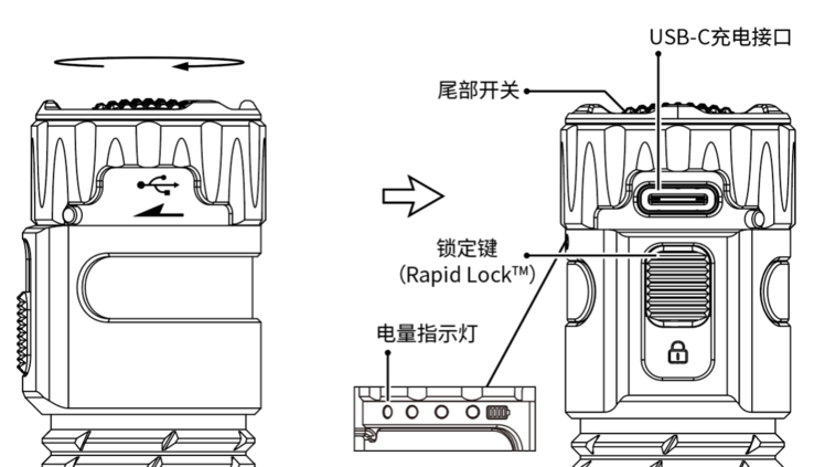 Helaas kan de batterij, net als bij de EDC33, niet worden vervangen. Volgens Nitecore zit er in de EDC35 een 21700 batterij. Net als zijn voorganger heeft deze een bijzonder hoge capaciteit (6000 mAh) die 21,6 wattuur biedt. De normale capaciteit voor een 21700 batterij is ongeveer 18 wattuur. Vier LED's geven de status van de batterij aan.