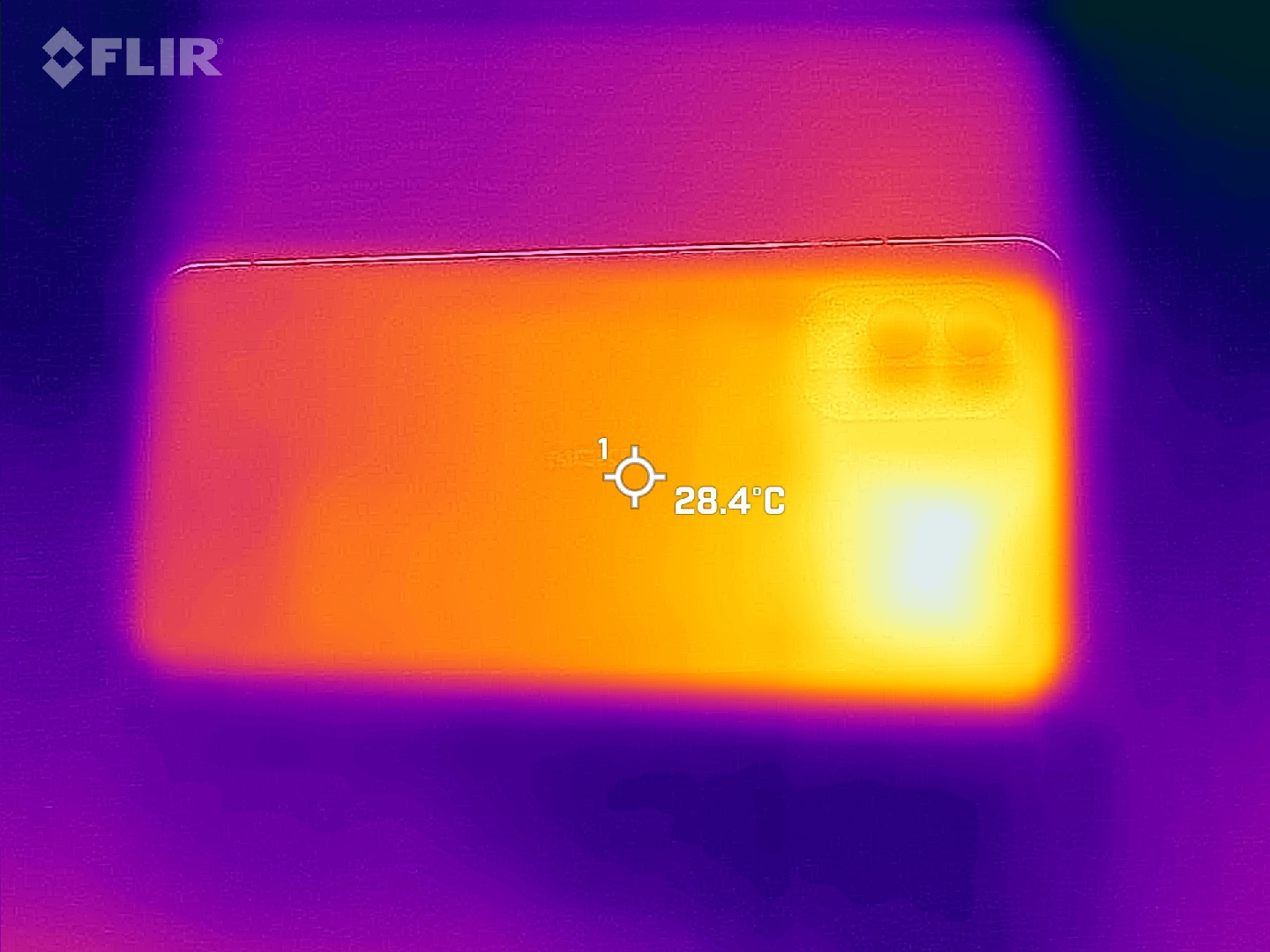 De Nokia X30 5G blijft aangenaam koel tijdens het gebruik. Hij warmt slechts op tot maximaal 38,5 °C, zelfs onder zware belasting. Ook intern loopt de smartphone niet uit de hand. Zoals blijkt uit de 3DMark wild-life stress tests, is hij in staat om op vrijwel elk moment volledige prestaties te leveren, zelfs onder langdurige maximale belasting.