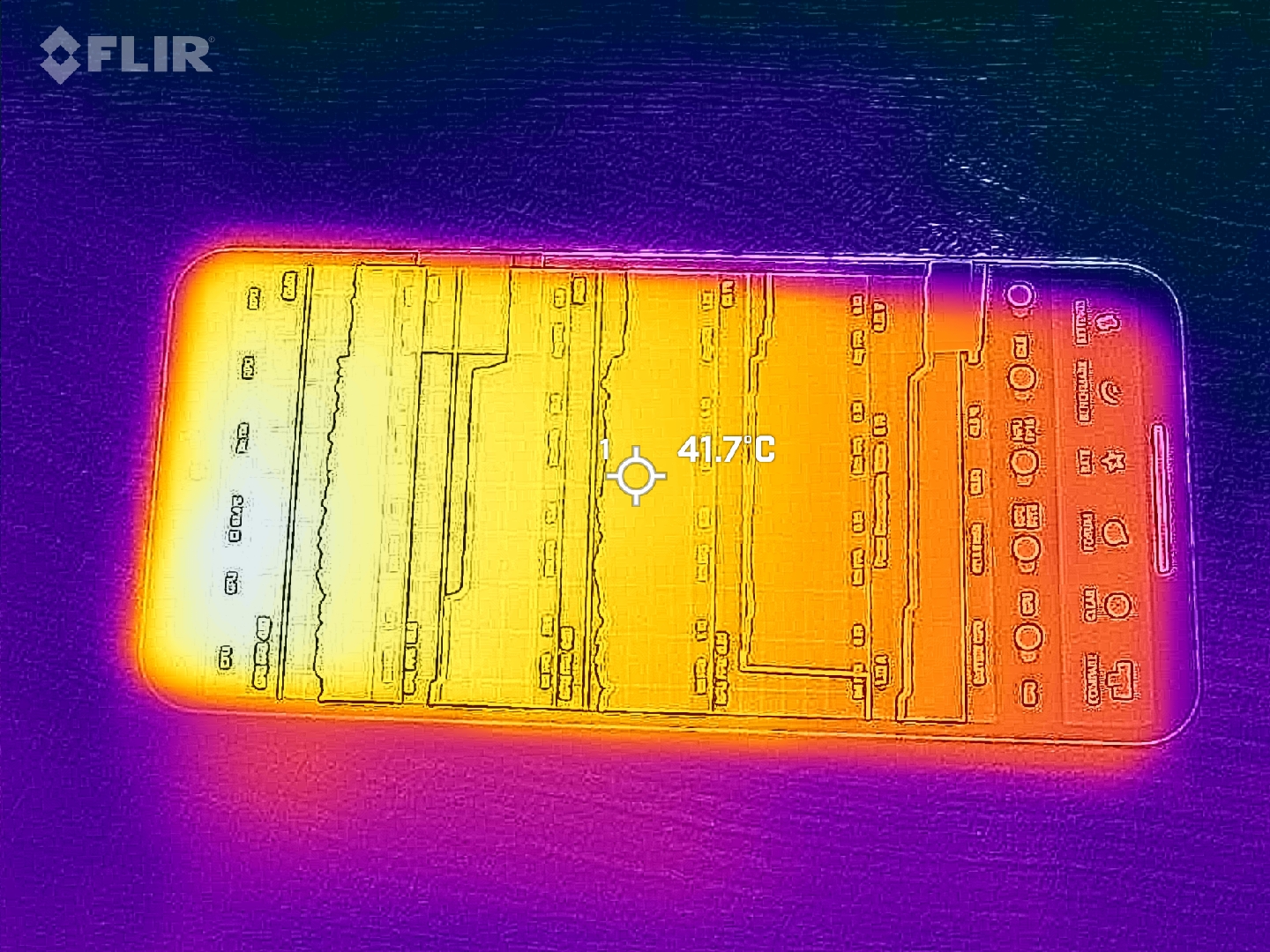 (-) De maximumtemperatuur aan de bovenzijde bedraagt 45.8 °C / 114 F, vergeleken met het gemiddelde van 35.2 °C / 95 F, variërend van 21.9 tot 247 °C voor de klasse Smartphone.
