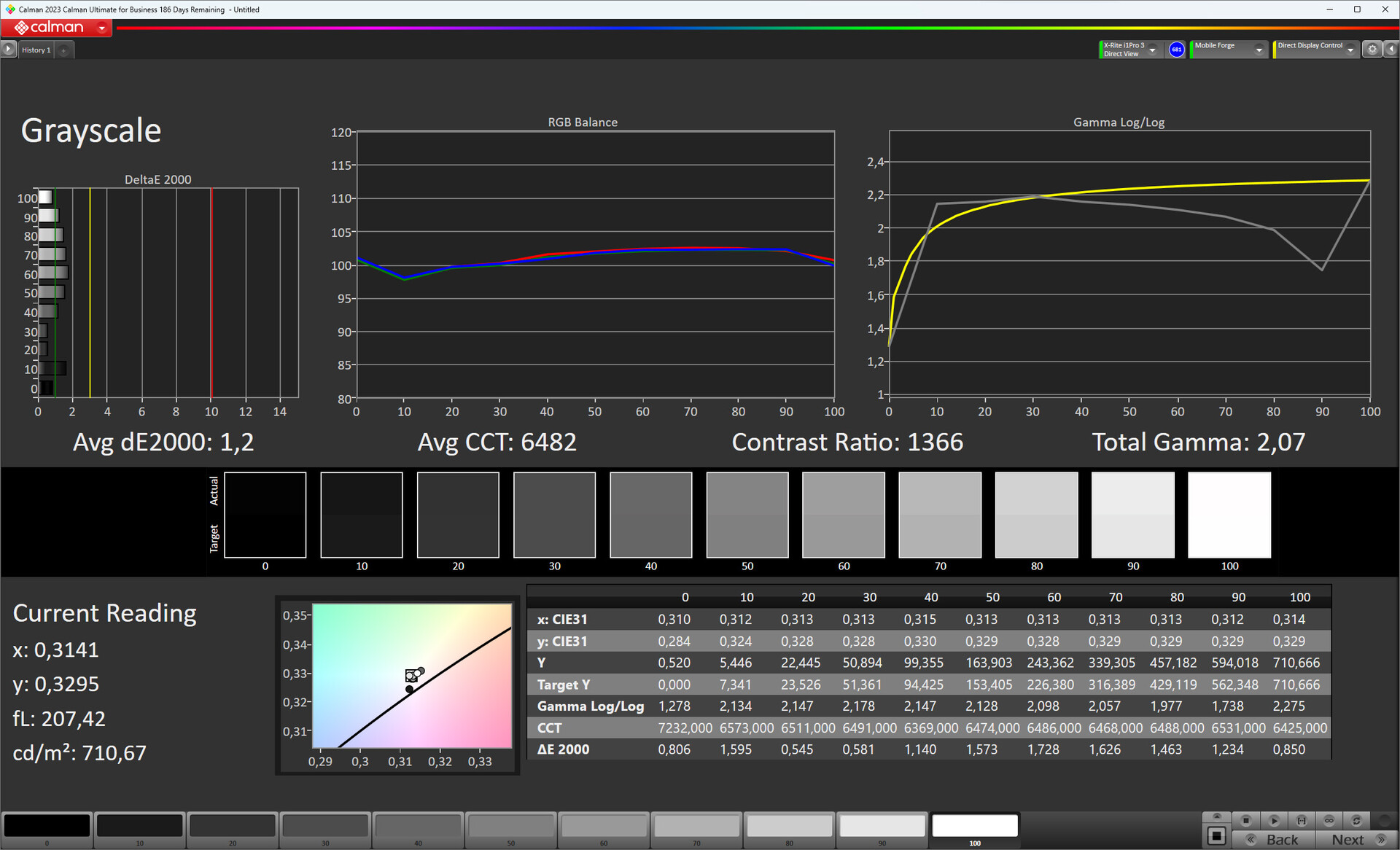 ΔE ColorChecker Calman: 1.6 | ∀{0.5-29.43 Ø4.78}