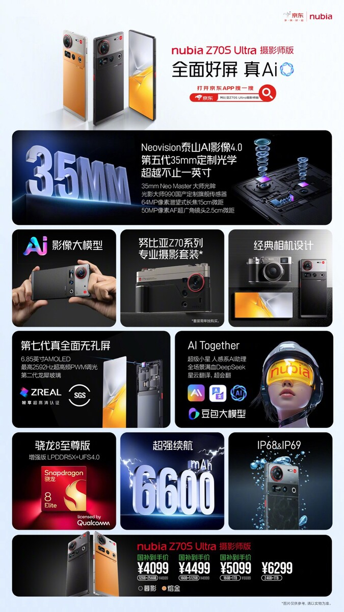 Vivo heeft nog maar net de X200 Ultra met een 35 mm primaire camera en een accessoire fotokit met een innovatieve zoomcameralens. Nubia heeft echter in natura gereageerd met de Z70S Ultra, die de Z70S Ultra van november vorig jaar vervangt Z70 Ultra (momenteel $769 bij Amazon).