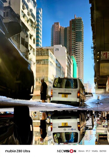 De eerste voorbeeldfoto's gemaakt met de 35 mm hoofdcamera van de Nubia Z80 Ultra zijn vooral bedoeld om het "natuurlijke perspectief" van de camera te demonstreren. Nubia kiest ook voor een terughoudende aanpak van de beeldverwerking, met de nadruk op natuurlijke in plaats van oververzadigde kleuren en een relatief hoge contrastratio. Sommige van de voorbeeldfoto's zien er wazig uit, maar kijkers moeten geen conclusies trekken over de lage resolutie van de gedeelde afbeeldingen