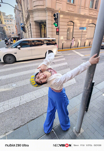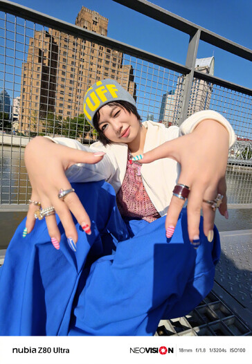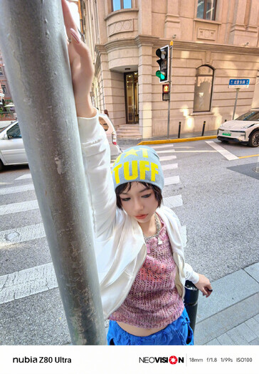 De ultra-groothoekcamera heeft dan wel een aanzienlijk grotere sensor, maar met een brandpuntsafstand van 18 mm legt hij lang niet zo'n groot gezichtsveld vast als zijn voorganger. De voorbeeldfoto's zijn niet bijzonder informatief, omdat Nubia deze foto's onder relatief weinig veeleisende omstandigheden heeft gemaakt. De huidtinten van het model variëren tussen de foto's, wat duidt op een redelijk betrouwbare witbalans, maar deze foto's tonen ook ingetogen kleuren en natuurlijk ogende contrasten
