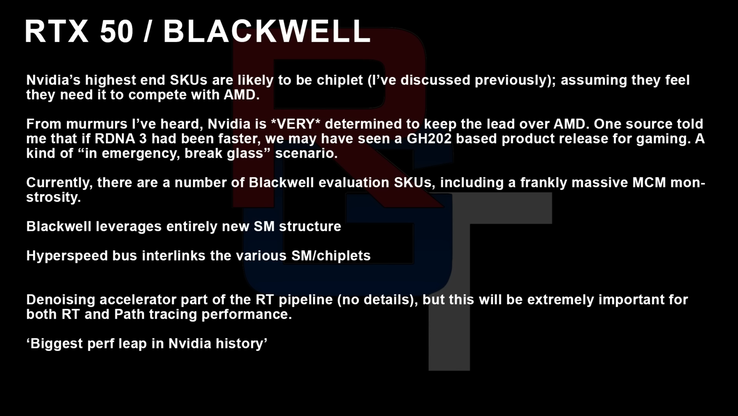 Het lijkt erop dat Blackwell denoising direct zal integreren als onderdeel van de RT pijplijn, wat theoretisch zou moeten helpen met hogere RT prestaties, met name in path tracing.