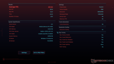 Het omschakelen van de ECC-status heeft invloed op de prestaties, zoals hieronder te zien is. Met ECC geactiveerd op de RTX 4090, dalen 3DMark Speed Way scores met 6,4%, terwijl Cyberpunk 2077 2.21 Phantom Liberty ongeveer 5% minder gemiddelde fps ervaart.
