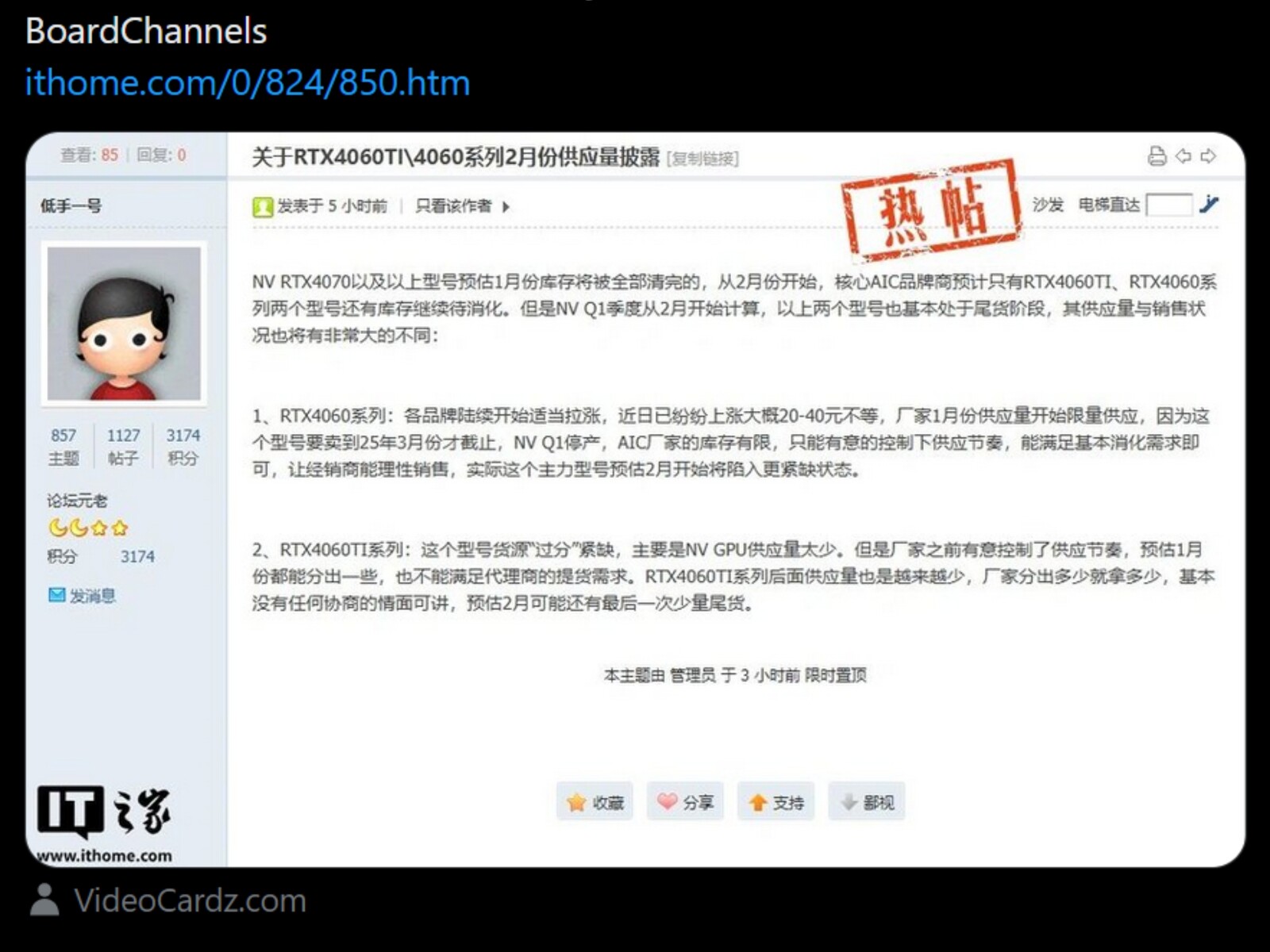 De Tawainese tech-site iThome plaatste een bericht van een dealer die bevestigde dat de RTX 4070 na januari niet meer in voorraad zou zijn. Aangezien de RTX 5060 pas in maart of later wordt verwacht, zou de RTX 4060 langere tijd beschikbaar moeten blijven. Aangezien iThome een Chinees-talige website is, verspreidden Engelse vertalingen van de voorraadupdates van Nvidia zich al snel op X accounts.