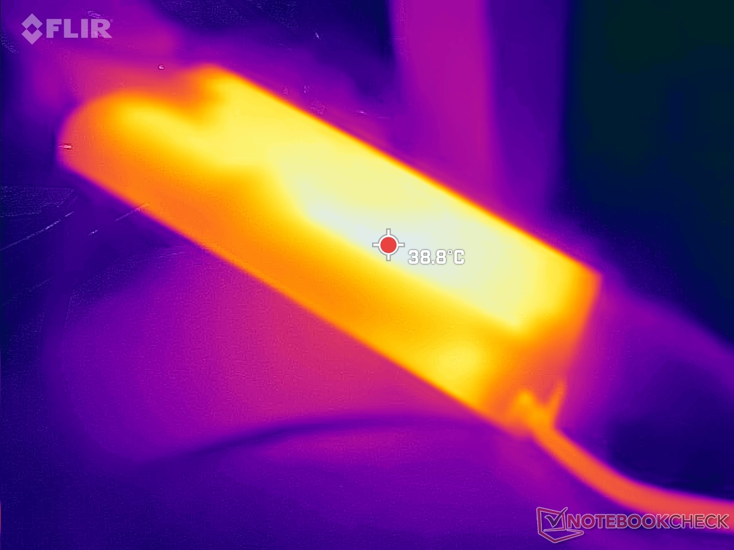 De oppervlaktetemperaturen zijn inderdaad wat warmer dan wat we op de gewone Precision 7670 vaststelden. Hete plekken op het toetsenbord en de achterkant bij veeleisende belastingen zoals games voor langere tijd kunnen elk ongeveer 40 C bereiken, vergeleken met 35 C op het dunnere reguliere model. Deze resultaten komen overeen met onze kerntemperatuurmetingen in de volgende sectie hieronder, waar onze CPU en GPU zich zouden stabiliseren bij warmere temperaturen.