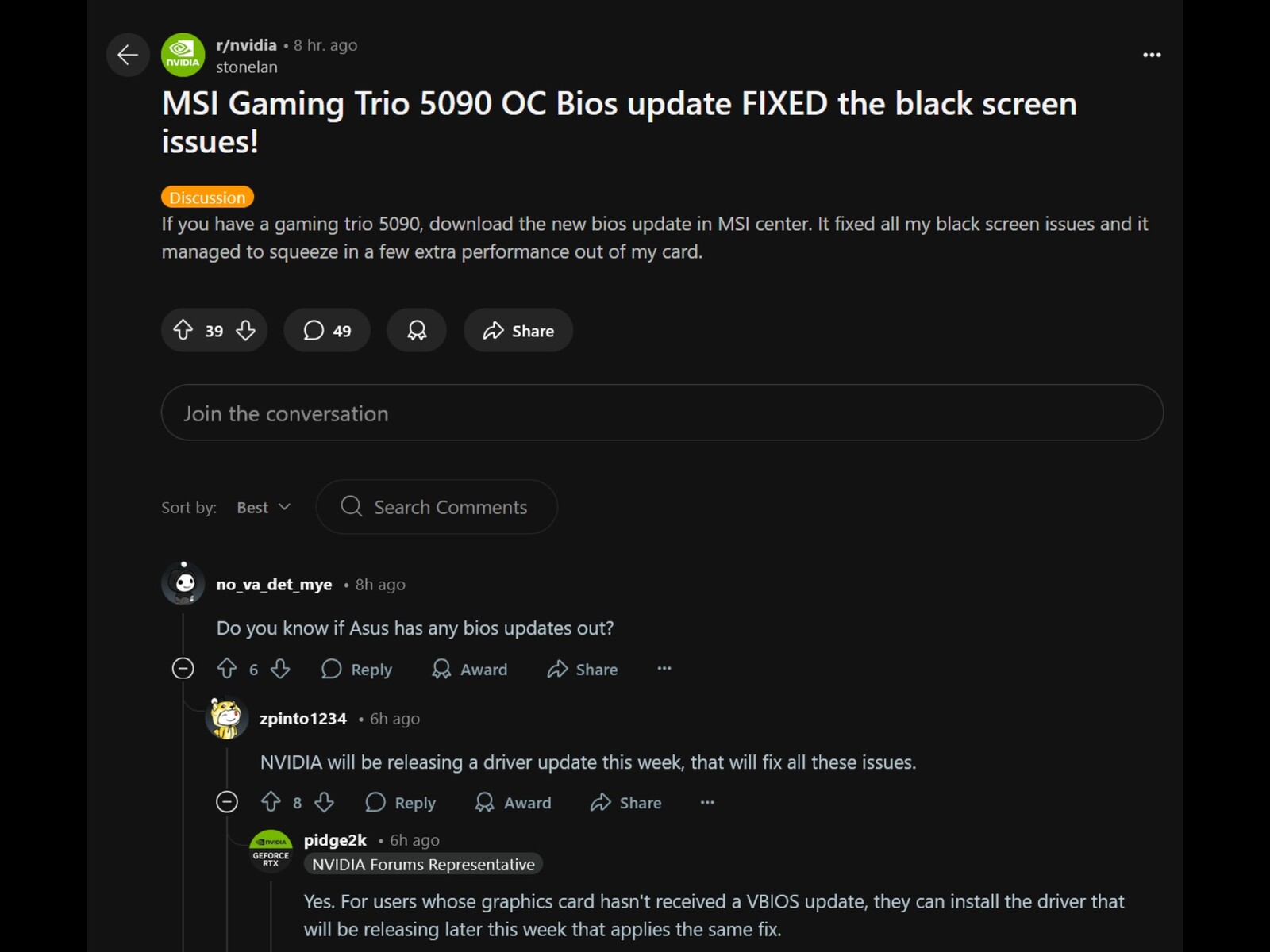 Nvidia kiest voor een tweeledige aanpak om het fenomeen zwart scherm op te lossen. Terwijl ze leveranciers aanmoedigen om een bijgewerkt VBIOS te verspreiden, is een nieuwe update van het Nvidia-stuurprogramma een meer universele oplossing. Totdat de software klaar is, kan het beperken van de resolutie van een beeldscherm tot 60Hz het probleem met het zwarte scherm oplossen. Andere gebruikers van RTX 50-series hebben succes gehad na het verplaatsen van de GPU van een PCIe 5.0 naar een PCIe 4.0 slot.