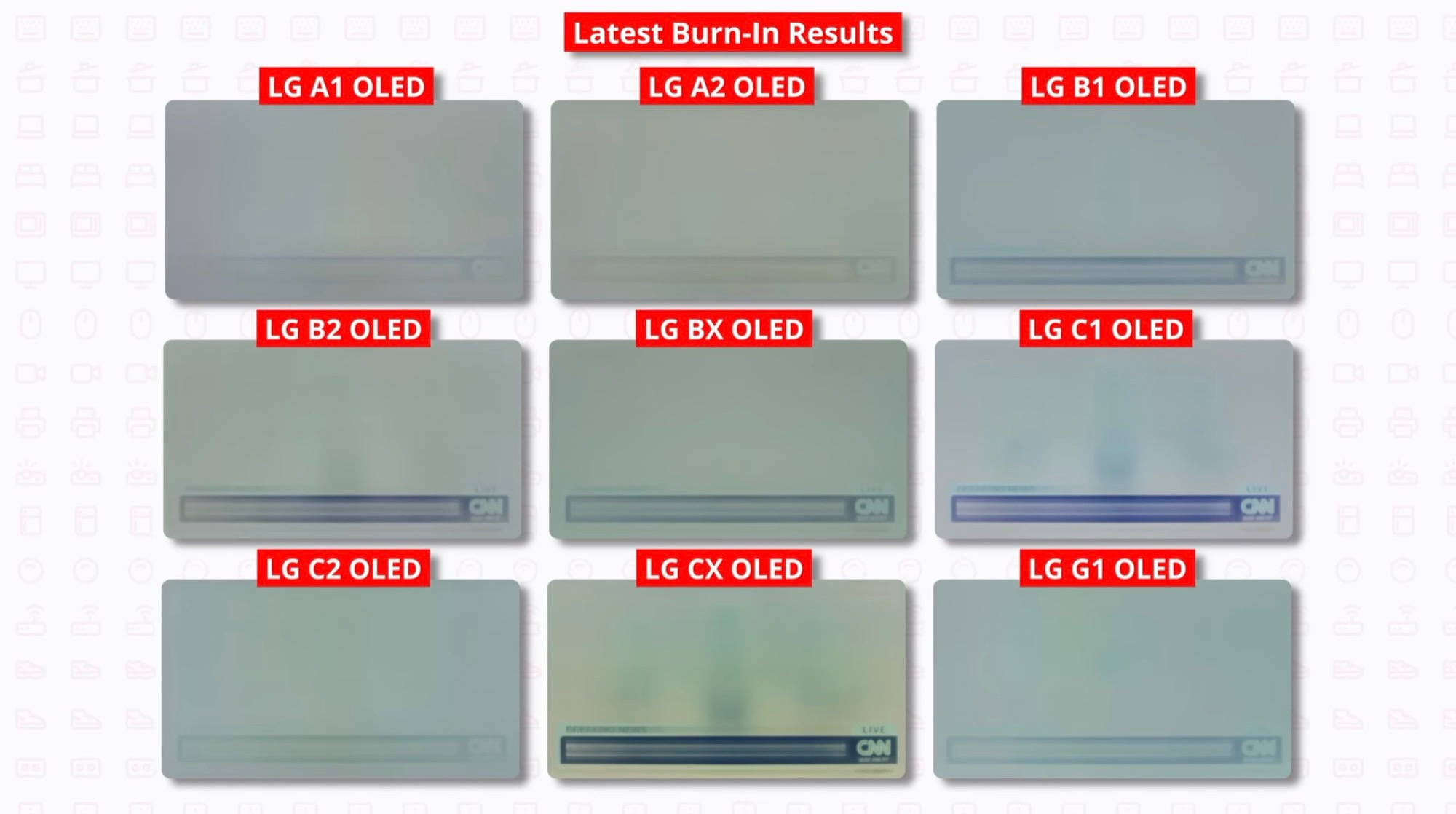 De meeste problemen werden aangetroffen bij tv's met LED-achtergrondverlichting zonder lokaal dimmen. Bijna 60% van deze modellen kampte met defecten, en in veel gevallen brandden één of meer LED's door. Ter vergelijking: defecten zijn uiterst zeldzaam bij OLED TV's. De test toont ook aan dat inbranden geen probleem is bij het bekijken van dynamische inhoud. Statische inhoud, zoals de eerder genoemde lichtkrant, kan zichtbare ghosting veroorzaken na langdurig gebruik bij hoge helderheid. In de praktijk is dit waarschijnlijk vooral relevant voor PC-monitoren en niet voor televisies.