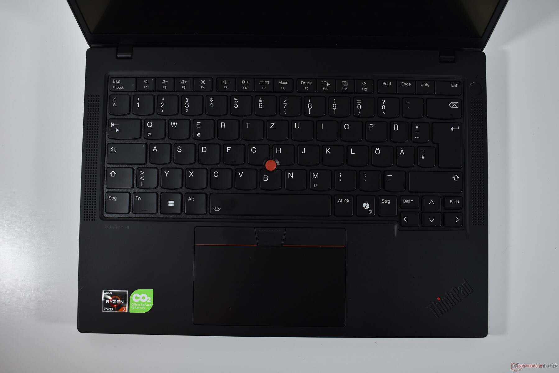 Lenovo plaatst een toetsenbord in de ThinkPad P14s Gen 5 AMD, dat we goed kennen van andere ThinkPad-modellen. De toetsaanslag bedraagt 1,5 mm - historisch gezien niet veel voor een ThinkPad, maar ruim voldoende voor de huidige standaard. Het typegevoel is prettig, het typen van lange teksten is geen enkele uitdaging. Het gebruikerscomfort wordt verhoogd door het afgeronde, licht concave ontwerp van de toetsen.