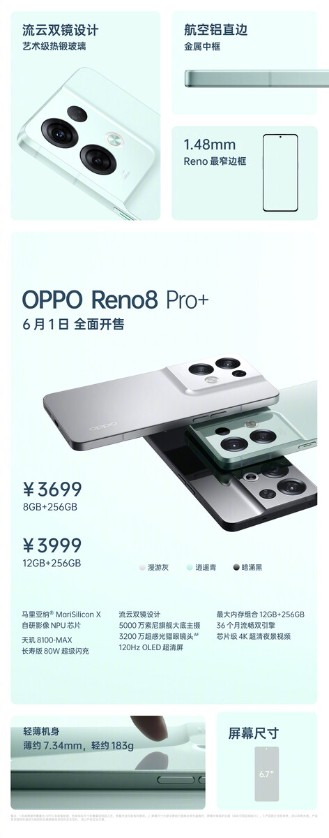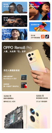 Verder is er geen SE variant zoals eerder geprojecteerd, hoewel de Pro+ naam een terugkeer heeft gemaakt in 2022. Dan nog, dit is inderdaad de Reno8 serie naar verluidt inaugurele Dimensity 8100-MAX/MariSilicon X toestel, een combinatie die blijkbaar de nieuwe telefoon's Sony IMX766-gekopieerde drievoudige achtercamera met 18 TOPS van "AI power" en 20-bit Ultra HDR, met een 11,6 TOPS per watt (W) "energie-efficiëntie ratio" voor de 8 Pro + in het algemeen.