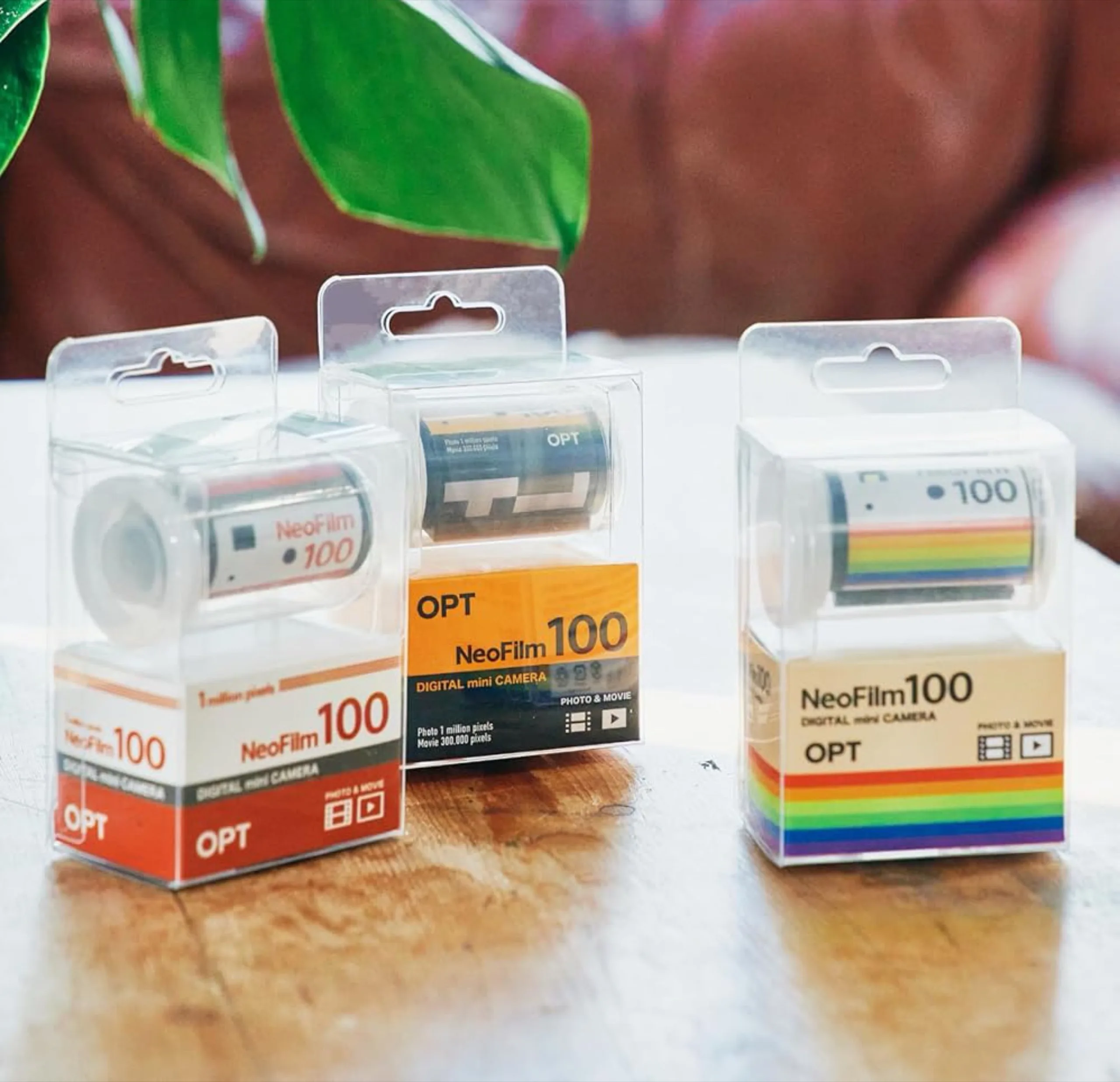 OPT100 NeoFilm verpakt compacte camera in een filmrolformaat