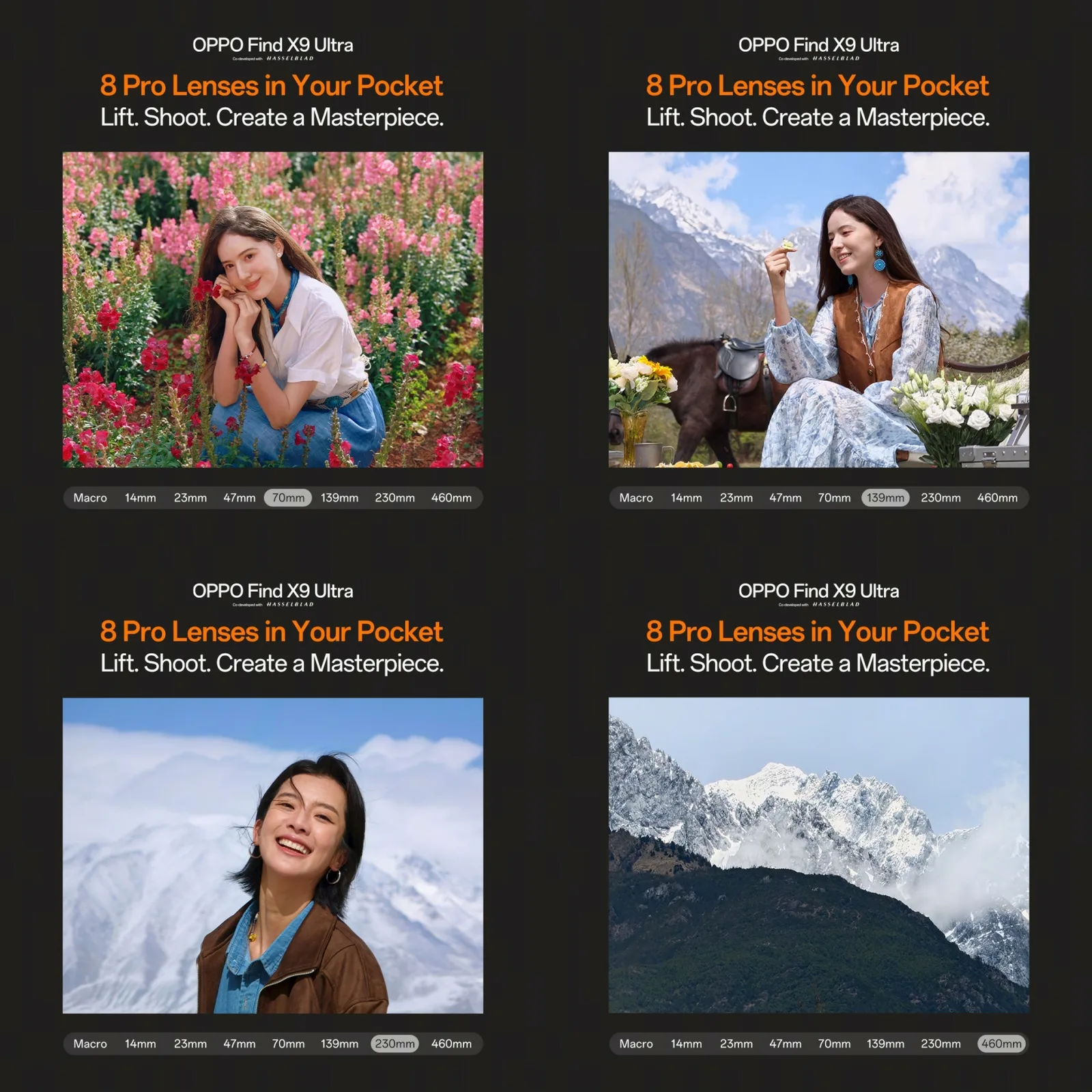 In de aanloop naar het langverwachte wereldwijde debuut van de Oppo Find X9 Ultra morgen, 21 april, heeft de Chinese telefoonfabrikant een verbluffende reeks cameramonsters gedeeld die de veelzijdigheid van het "8 Pro Lenses" systeem laten zien.