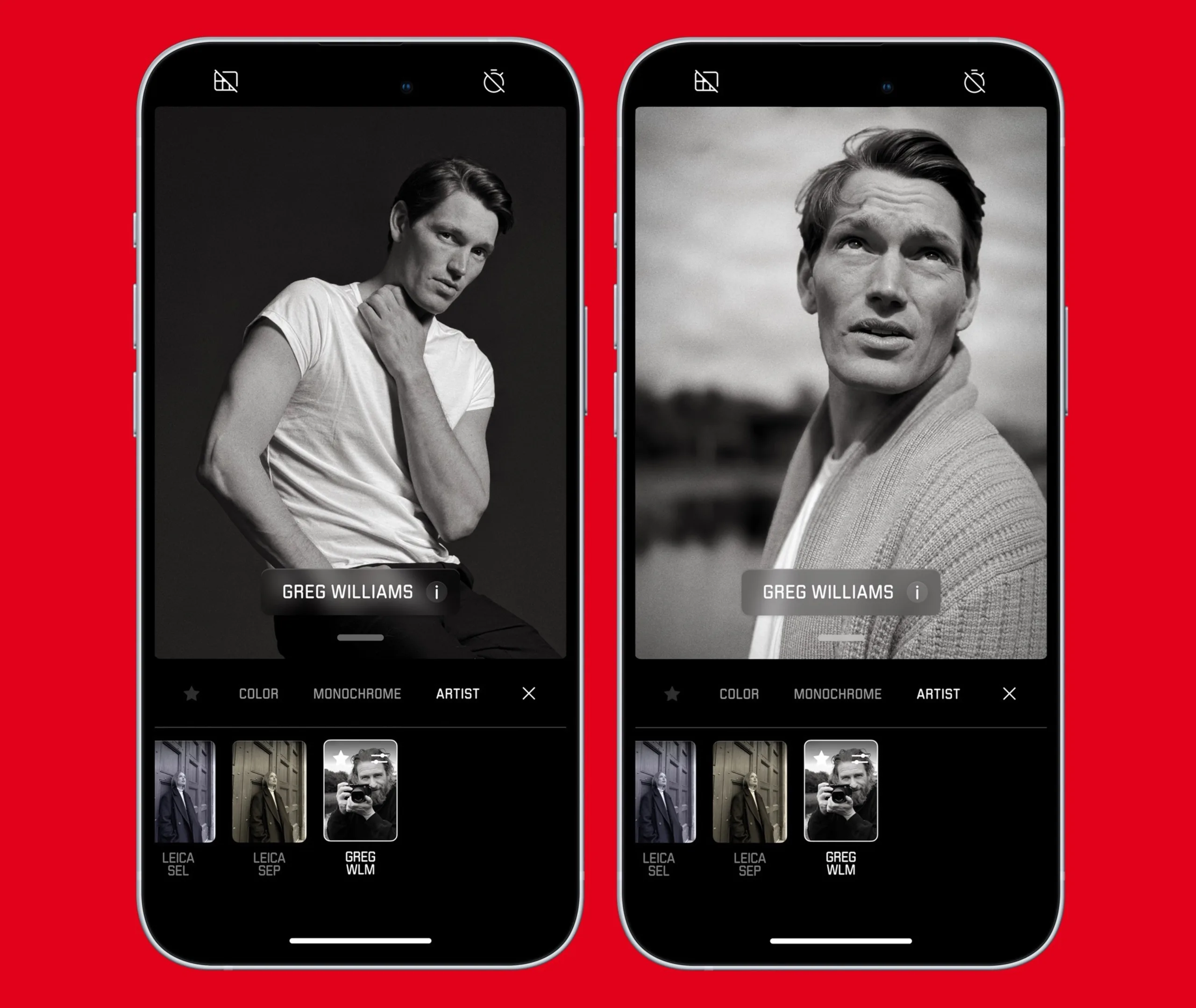 De eerste hiervan is een filter geïnspireerd op de foto's van de Britse fotograaf Greg Williams. Deze Artist Look wordt gekenmerkt door zwart-witfoto's met een hoog contrast en zichtbare beeldruis, die doen denken aan de klassieke Kodak Tri-X 400 film. Volgens de marketing van Leica benadrukt deze look authenticiteit, warmte en intimiteit, waarbij overmatige nabewerking wordt vermeden. De look is ook ontworpen om zich automatisch aan te passen aan verschillende lichtomstandigheden.