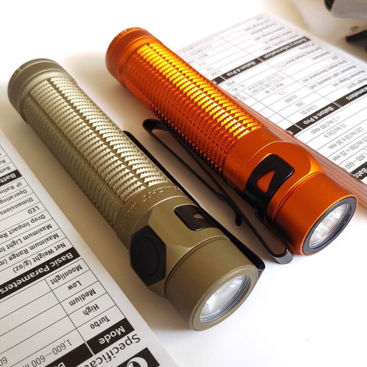 De Olight Batons hebben een gekartelde aluminium behuizing met een zij- en staartschakelaar. Aan de zijkant is een metalen clip bevestigd, zodat de Batons aan kleding en rugzakken kunnen worden vastgeklikt.