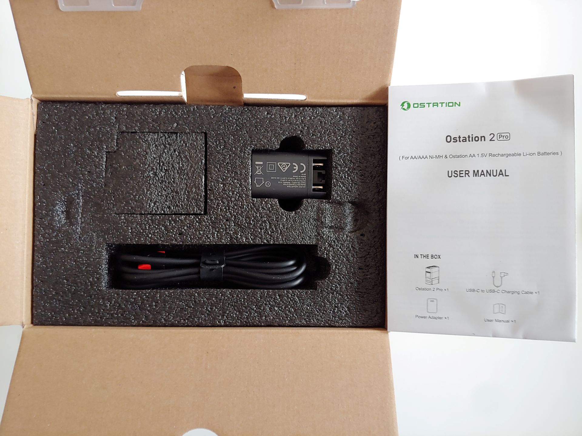 De batterijoplader wordt geleverd met een 18W USB-C oplader en kabel, en een snelstartgids. De batterijen werden geleverd voor de beoordeling.