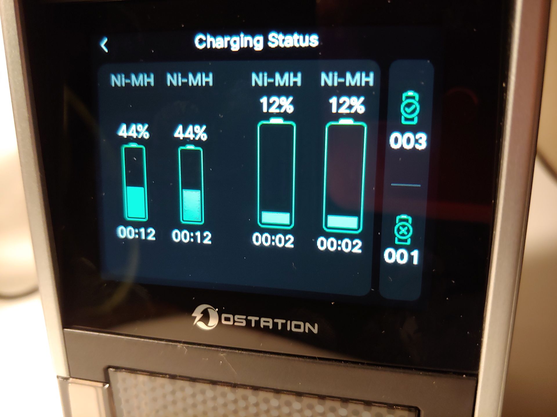 De Ostation 2 Pro laadde twee 2.200 mAh AA Ni-MH-batterijen in ongeveer 40 tot 48 minuten op van 1% tot 99%, waarbij 99% tot 100% tijdens het testen nog eens 21 minuten duurde. Twee AAA Ni-MH-batterijen van 950 mAh werden in ongeveer 50 minuten opgeladen van 1% tot 99%, waarbij 99% tot 100% nog eens 20 minuten in beslag nam. Omdat het apparaat slechts maximaal twee AA- en twee AAA-cellen tegelijk kan opladen, duurt het opladen van een maximale lading van 12 AA- en 12 AAA-cellen die leeg zijn meer dan zes uur.