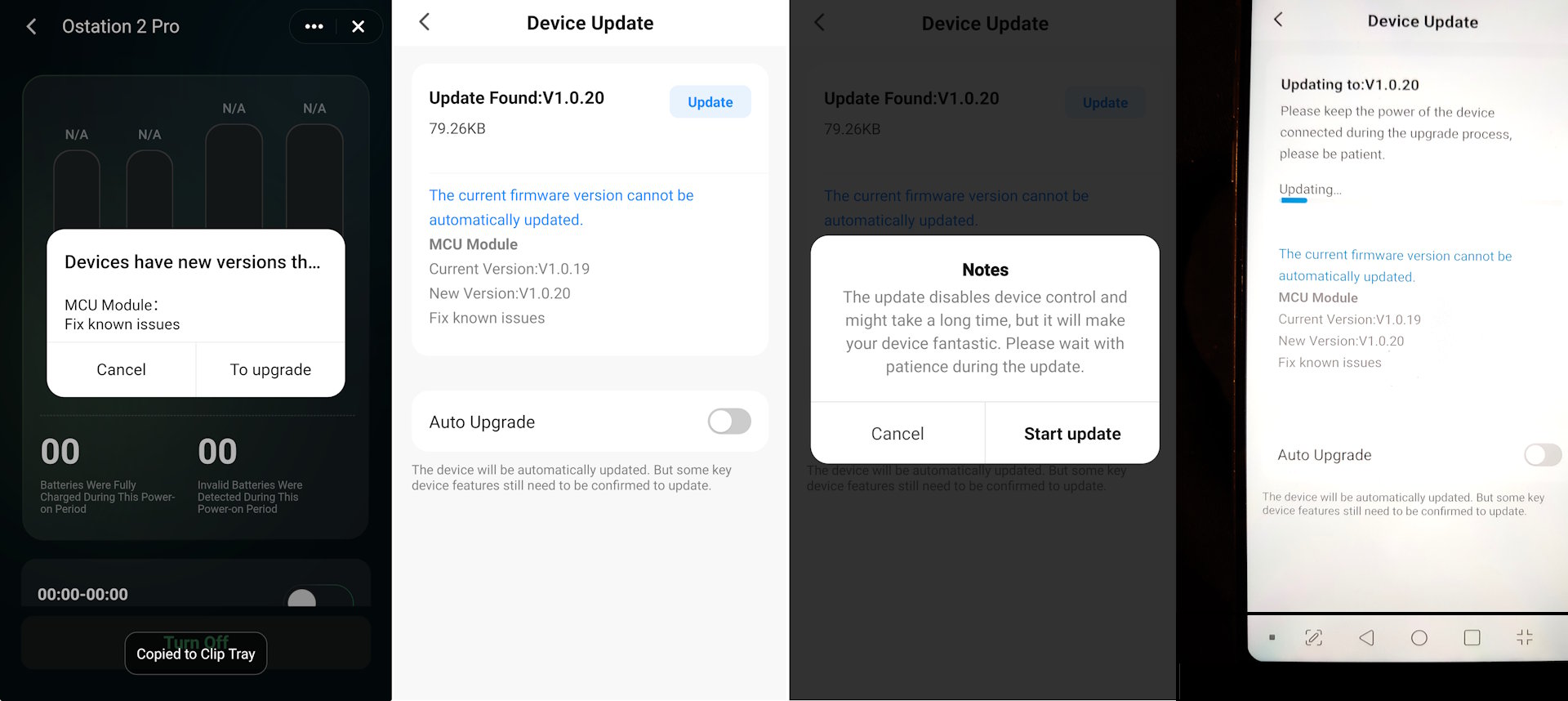 Het aanraakscherm kan worden gebruikt om het opladen te controleren en de weinige beschikbare instellingen te wijzigen. Met de smartphone-app kunnen gebruikers het opladen op afstand controleren, maar hiervoor is een 2,4 Ghz, geen 5 Ghz, Wi-Fi-verbinding nodig. Het Ostation ondersteunt geen Wi-Fi Direct verbindingen, waardoor het gebruik van de app buitenshuis beperkt is wanneer het Ostation gevoed wordt door generatoren of zonne-energie.