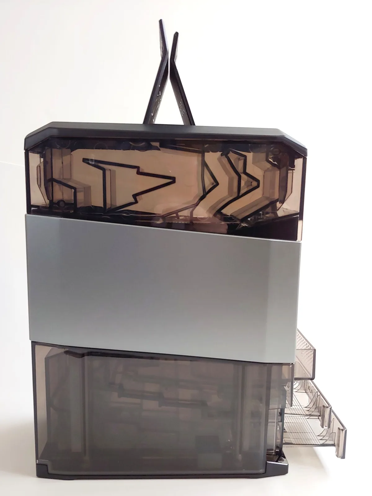 De lader heeft een torenontwerp. Batterijen worden van bovenaf geladen, terwijl geladen en slechte cellen in bakken aan de voorkant worden gedumpt. Telkens wanneer de machine wordt opgestart, draait deze gedurende enkele minuten rond om te controleren of er cellen in de laders en laadparen aanwezig zijn voor analyse en opladen. Er kunnen tot 12 opgeladen cellen van elk type in de machine worden opgeslagen, en de AA- en AAA-laden zijn zo ontworpen dat er telkens twee cellen tegelijk worden uitgeworpen als ze worden geopend. De lade voor slechte cellen heeft deze limiet niet.