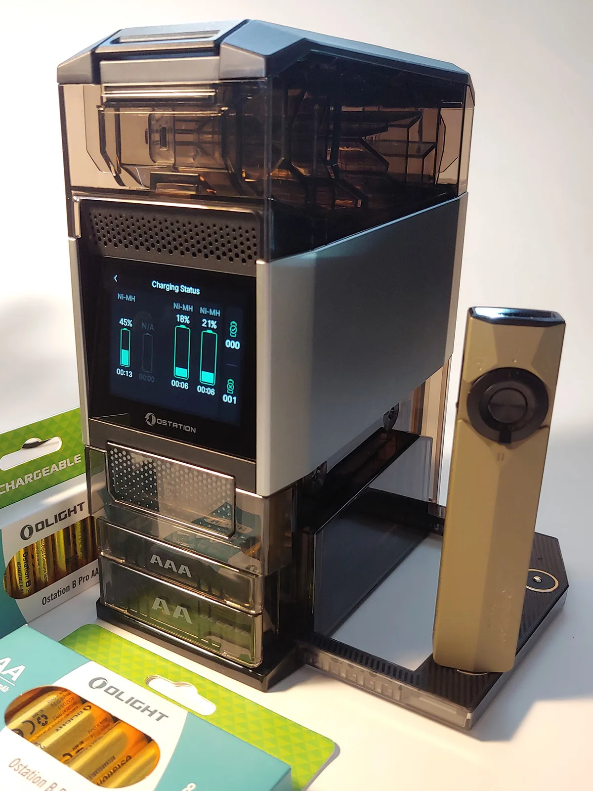 De Ostation 2 Pro biedt automatisch opladen van maximaal 12 AA en 12 AAA Ni-MH batterijen. Het laadt ook Olight Ecolast Li-ion AA-cellen en zaklampen op.David Chien (vertaald door DeepL / Ninh Duy) Gepubliceerd 🇺🇸 🇫🇷 ...