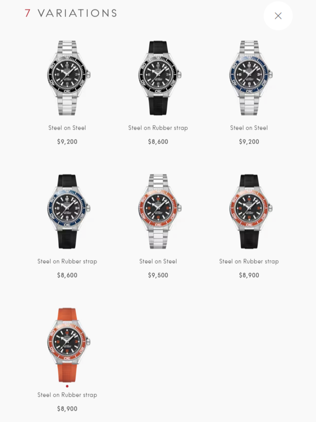 U kunt de Omega Seamaster Planet Ocean 600M horloges van de vierde generatie nu in Europa kopen. Er zijn zeven variaties, met stalen horloges met rubberen band vanaf £7,200/€8.400en stalen op stalen horloges vanaf £7,700/€9.000. Deze producten worden binnenkort gelanceerd op in de VSzullen deze producten op deze markt geprijsd zijn vanaf $8.600.