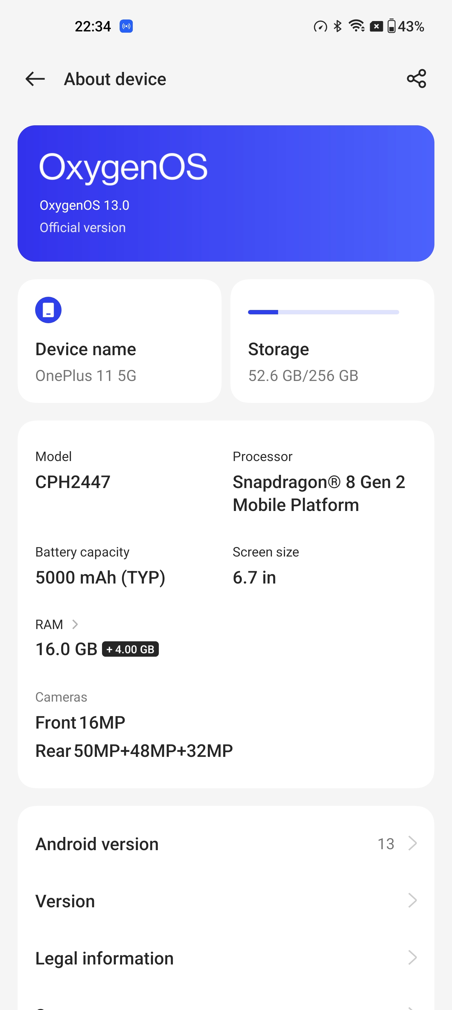 Aan de positieve kant biedt OnePlus UFS 4.0 interne opslag aan. Dit wordt echter alleen aangeboden in de top-end 256 GB variant. De gebruiker krijgt ongeveer 219 GB vrije ruimte om mee te spelen.