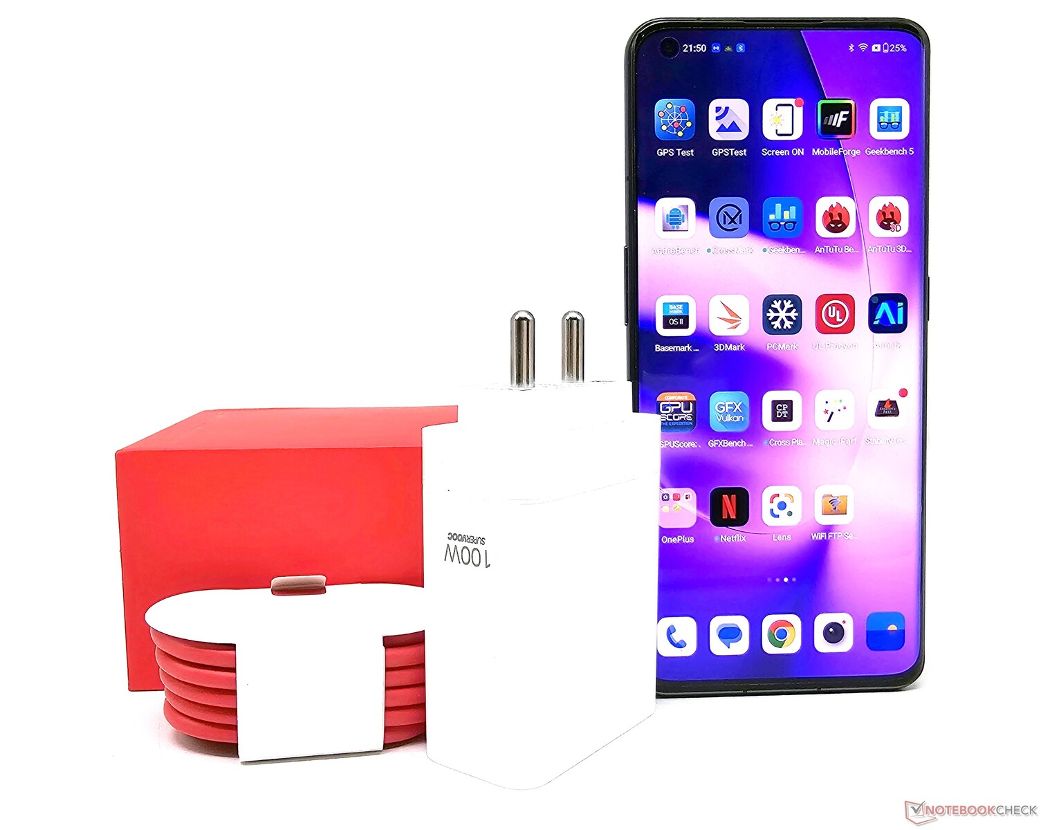 Een 100 W SuperVOOC-lader is gebundeld in de doos, wat misschien lager lijkt dan de 150 W lader die bij de 10T zat. Deze 100 W lader kan de telefoon echter in iets minder dan 30 minuten van nul tot volledige capaciteit opladen.