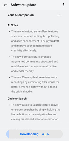 Zoals de onderstaande screenshots laten zien, heeft OnePlus met OxygenOS 15 zwaar ingezet op 'AI'. Zo beschouwt het bedrijf als hoogtepunten de AI Notes en AI Retouch diensten, waarvan het hoopt dat ze de gebruikerservaring zullen verbeteren bij het gebruik van respectievelijk de standaard Notes en Camera apps. Ter referentie: de update zou moeten aankomen als CPH2447_15.0.0.201 (EX01), zij het misschien alleen voor OnePlus 11 handsets die in India verkocht worden.