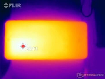 (+) Bij onbelast gebruik bedraagt de gemiddelde temperatuur voor de bovenzijde 23.9 °C / 75 F, vergeleken met het apparaatgemiddelde van 32.9 °C / 91 F.