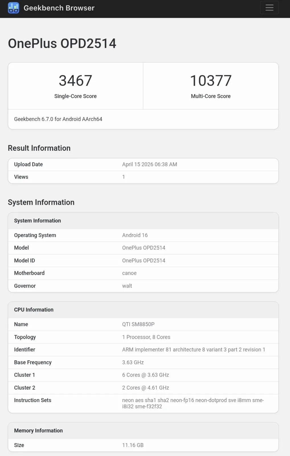 Desalniettemin is wat de nieuwe tablet van OnePlus lijkt te zijn nu op Geekbench verschenen. De single-core score van 3.467 is aan de lage kant van wat we van de Snapdragon 8 Elite Gen 5 verwachten Snapdragon 8 Elite Gen 5 chipset. In feite laat deze vroege score de Pad 3 Pro achter zich bij de kleinere OnePlus 15. De multi-core score van 10.395 zet de tablet op de tweede plaats in ons Geekbench 6 multi-core klassement.