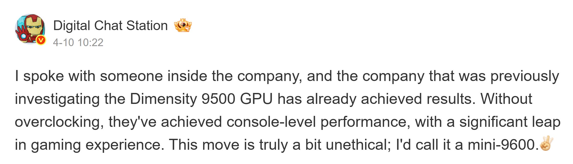 De productieve leaker meldt dat het bedrijf de GPU van de Dimensity 9500 onder de loep heeft genomen en goede resultaten heeft geboekt. Deze getweakte GPU, de ARM Mali G1- Ultra MC12kan blijkbaar "console-level" prestaties leveren zonder overklokken.