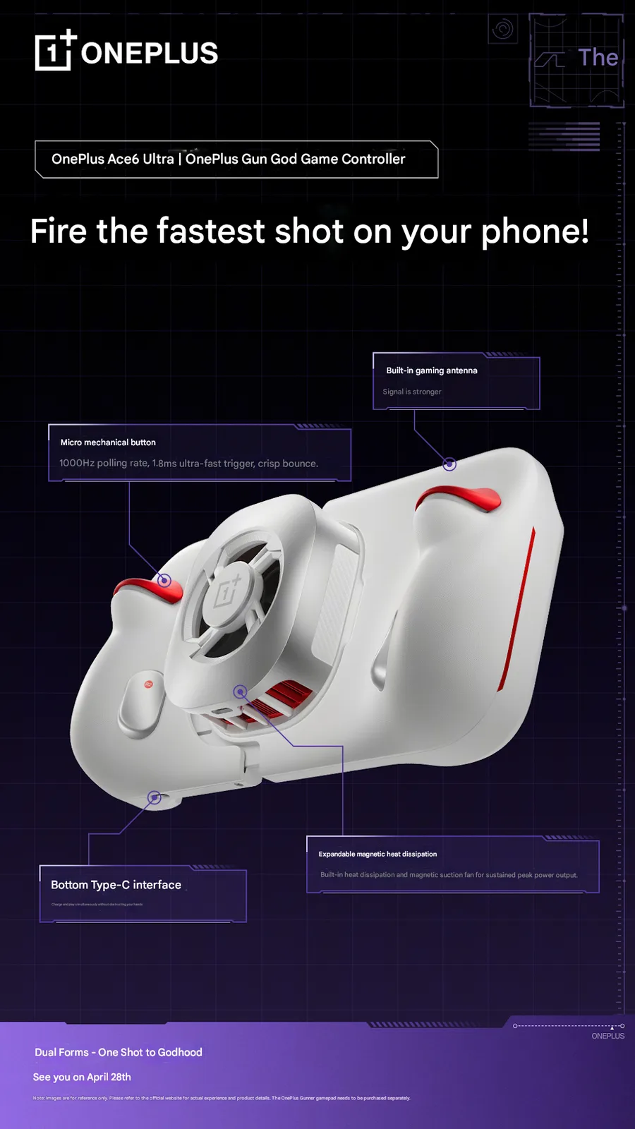 Deze nieuwe gamecontroller wordt samen met de OnePlus Ace 6 Ultra in China gelanceerd. Het Chinese debuut is gepland voor 28 april 2026, en het is nog onduidelijk of het bedrijf de smartphone ook op de wereldmarkt zal uitbrengen.