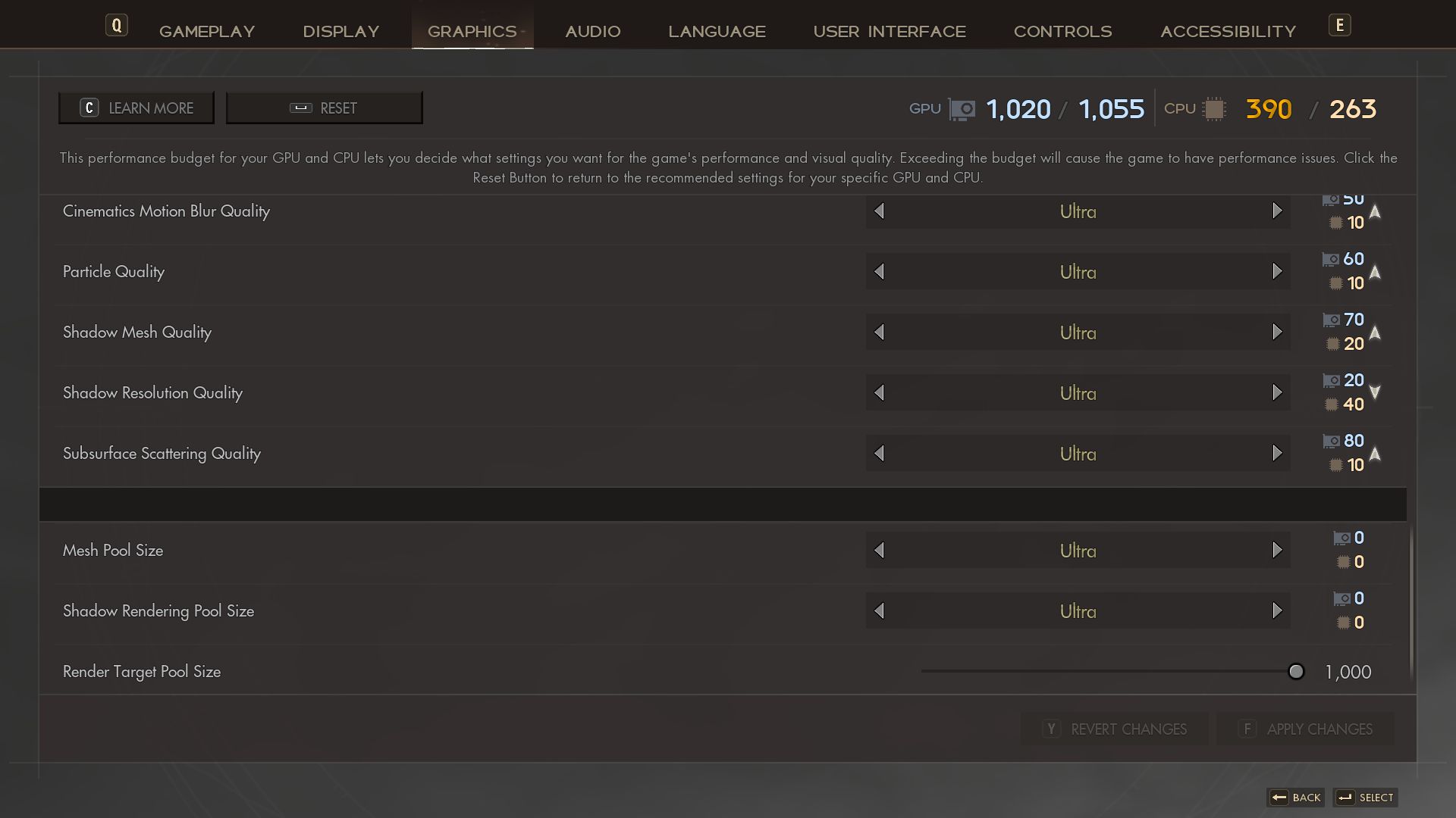 Helaas kun je ook niet vertrouwen op de CPU en GPU belastingsindicator die is ingebouwd in het grafische menu. Volgens het spel zou spelen op maximale instellingen niet eens mogelijk moeten zijn op een Core i9-13900K, die meer dan genoeg kracht zou moeten leveren. Het is ook jammer dat uitleg, vergelijkingsbeelden en eventuele praktische presets lijken te ontbreken in het grafische menu.