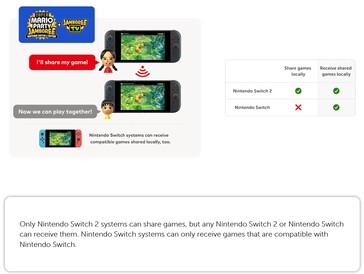Met de nieuwe functie GameShare kunnen delen van een spel worden gestreamd en gedeeld op meerdere Switch 1- en Switch 2-consoles, zij het met verminderde beeldkwaliteit. De functie werkt met lokaal aangesloten Switch 1- en Switch 2-eenheden of via GameChat met Switch 2-eenheden.