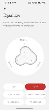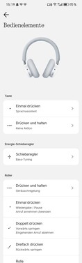 De hardwarebediening is intuïtief en gebruiksvriendelijk: Het rechteroordopje heeft een voelbare draaiknop voor volume/afspelen/pauzeren (draaien/vegen). De linkeroordop bevat de aan/uit-knop en de schuifregelaar voor basversterking. De app-extensie schittert met equalizers, gepersonaliseerde geluidscurves en updatemeldingen. Er is ook een knop om de stemassistent te activeren.