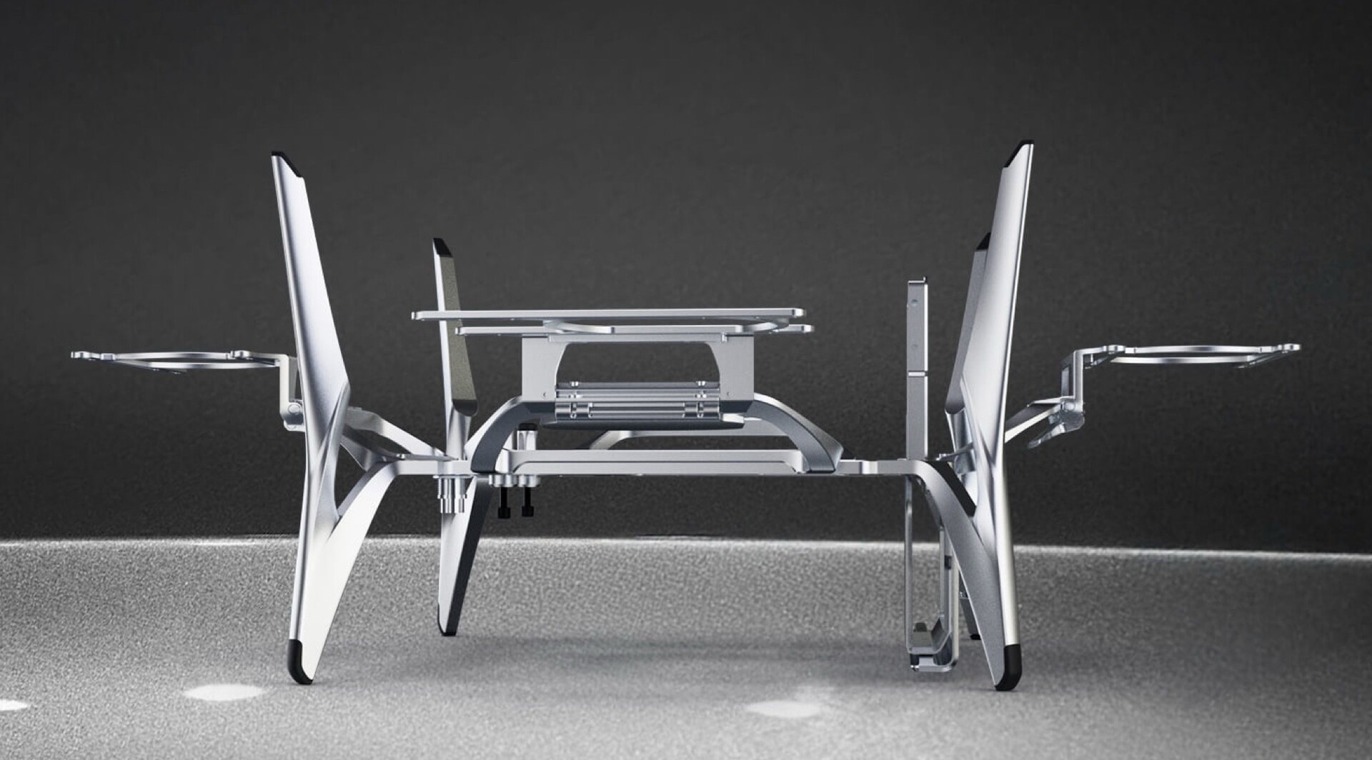 Een opvallend kenmerk zijn de drie "vleugels", waarvan de hoek kan worden ingesteld van 0 tot 90 graden. Elk van deze vleugels biedt ruimte voor drie 120mm ventilatoren of één 360mm radiator, wat ideaal is voor een alles-in-één CPU-koeler. Gezien het open ontwerp van deze kast zullen gewone ventilatoren waarschijnlijk grotendeels decoratief zijn. Nuttiger en waarschijnlijk minder esthetisch is de optie om een tweede voeding of harde schijven op deze vleugels te monteren.