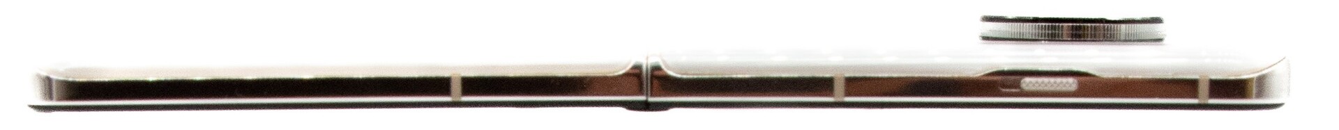 De voor- en achterkant zijn ook van glas, maar er is geen verdere informatie van de fabrikant. Het 6,8-inch interne scherm wordt beschermd door Schott UTG. Aan de rechterkant bevinden zich een volumeknop en een aan/uit-knop met een geïntegreerde vingerafdruklezer. Aan de linkerkant heeft de Oppo Find N3 Flip een schuifknop voor de notificatie-instellingen. Alle knoppen hebben een goed drukpunt en zitten zonder speling.